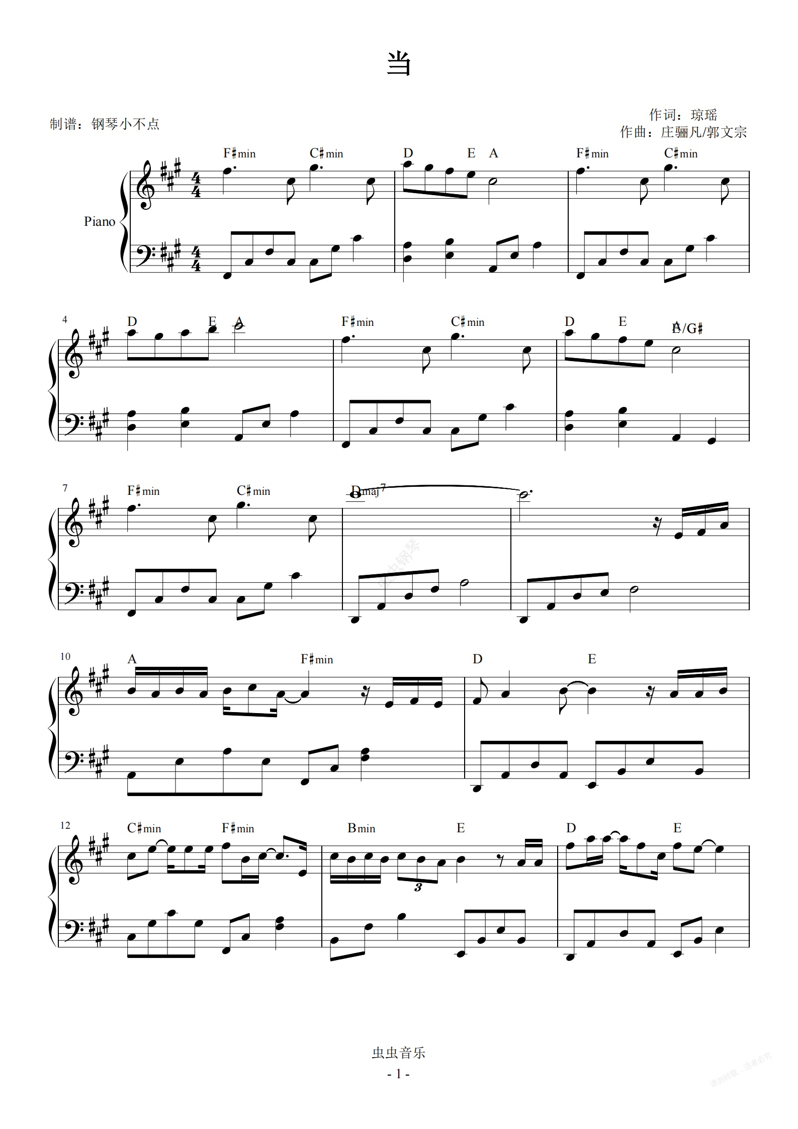 钢琴谱:当 【还珠格格 怀旧 简易】