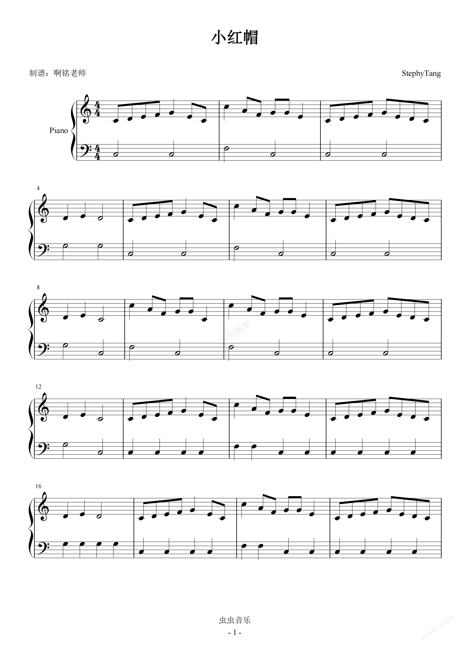 钢琴谱:小红帽【小汤2 快乐学儿歌】
