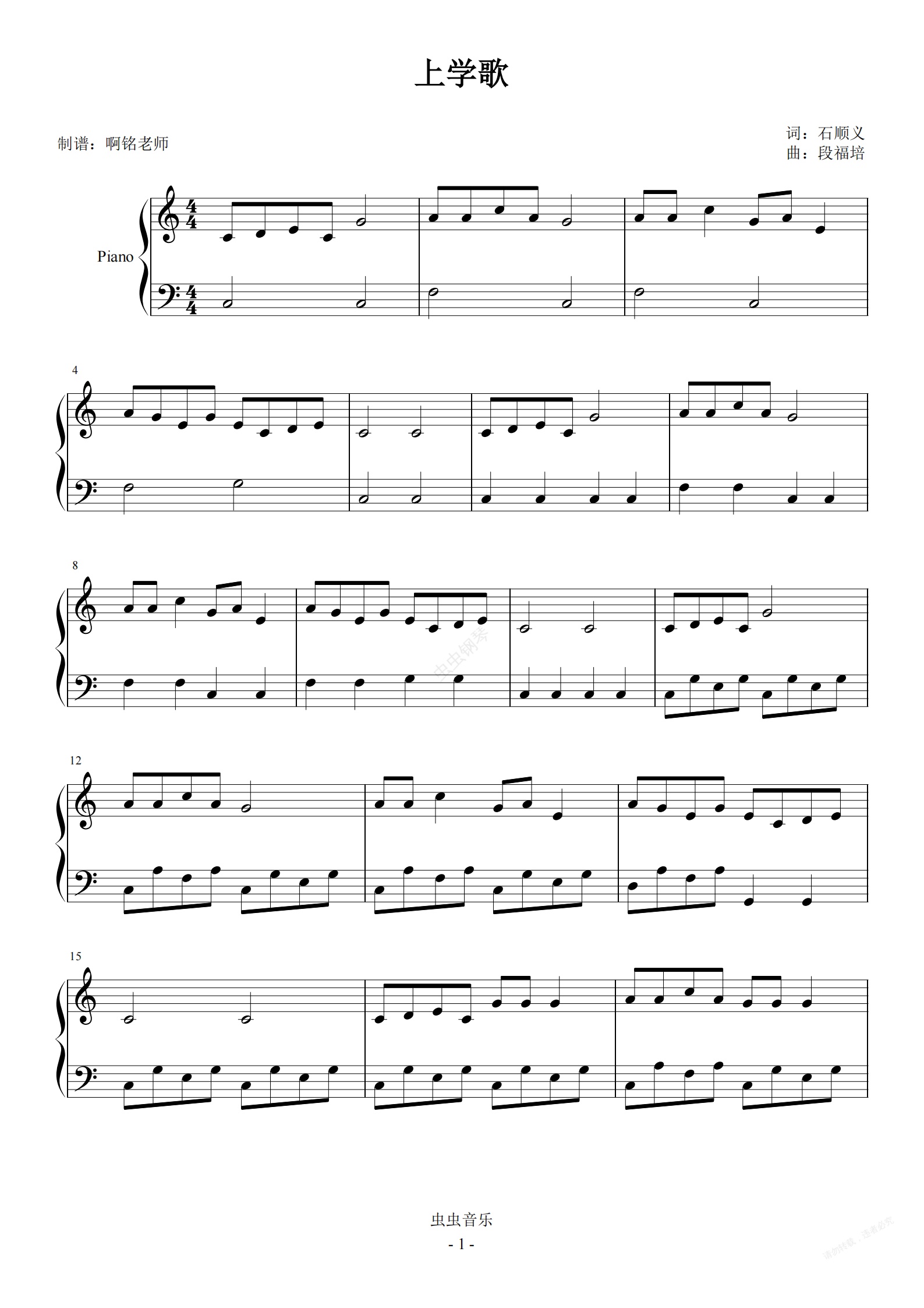 钢琴谱:上学歌 【小汤3 快乐学儿歌】