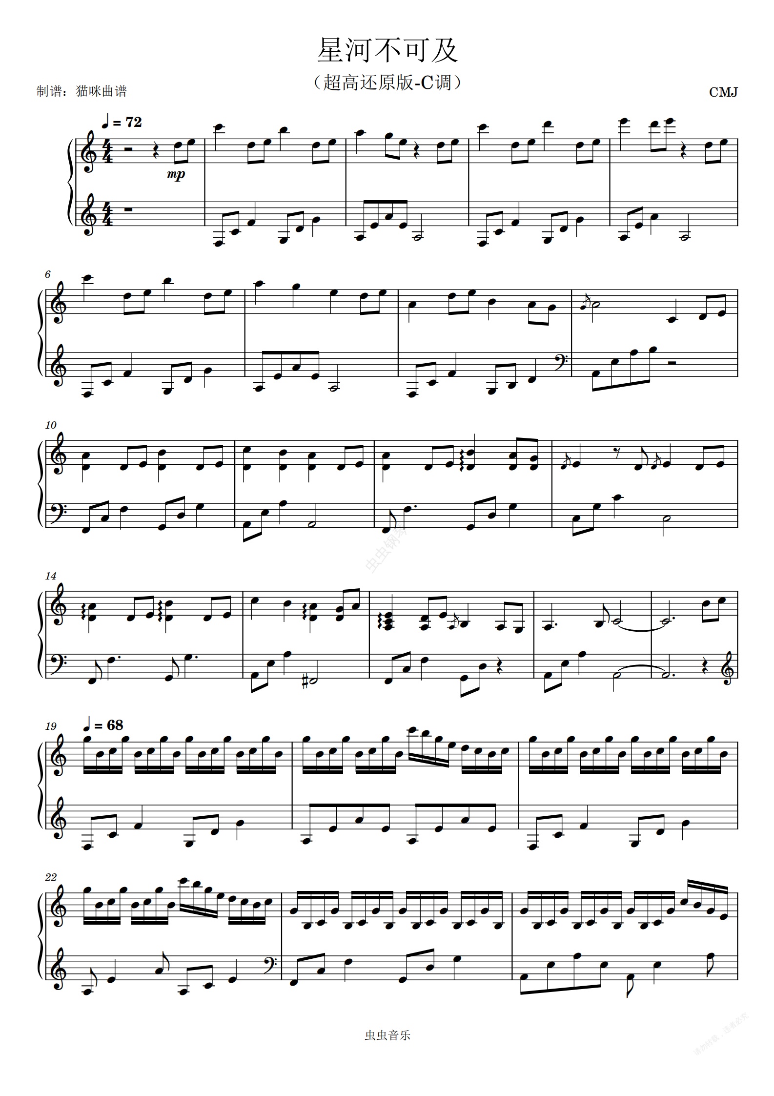 钢琴谱:星河不可及(超高还原版-C调)