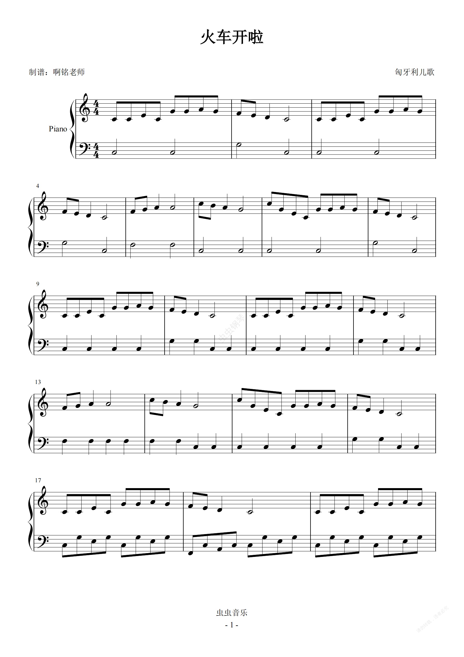 钢琴谱:火车开啦【小汤3 快乐学儿歌】