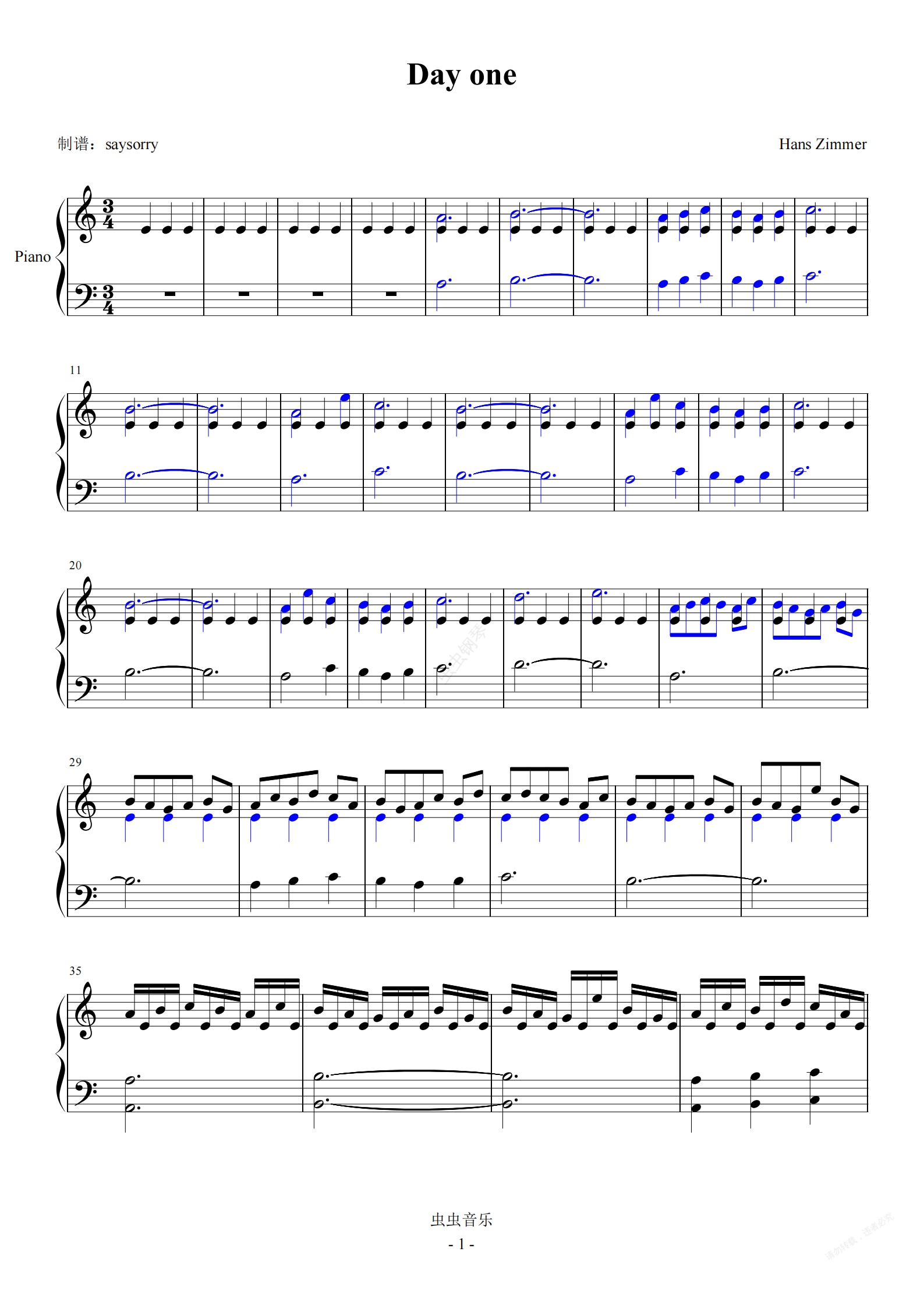 钢琴谱:星际穿越Day One