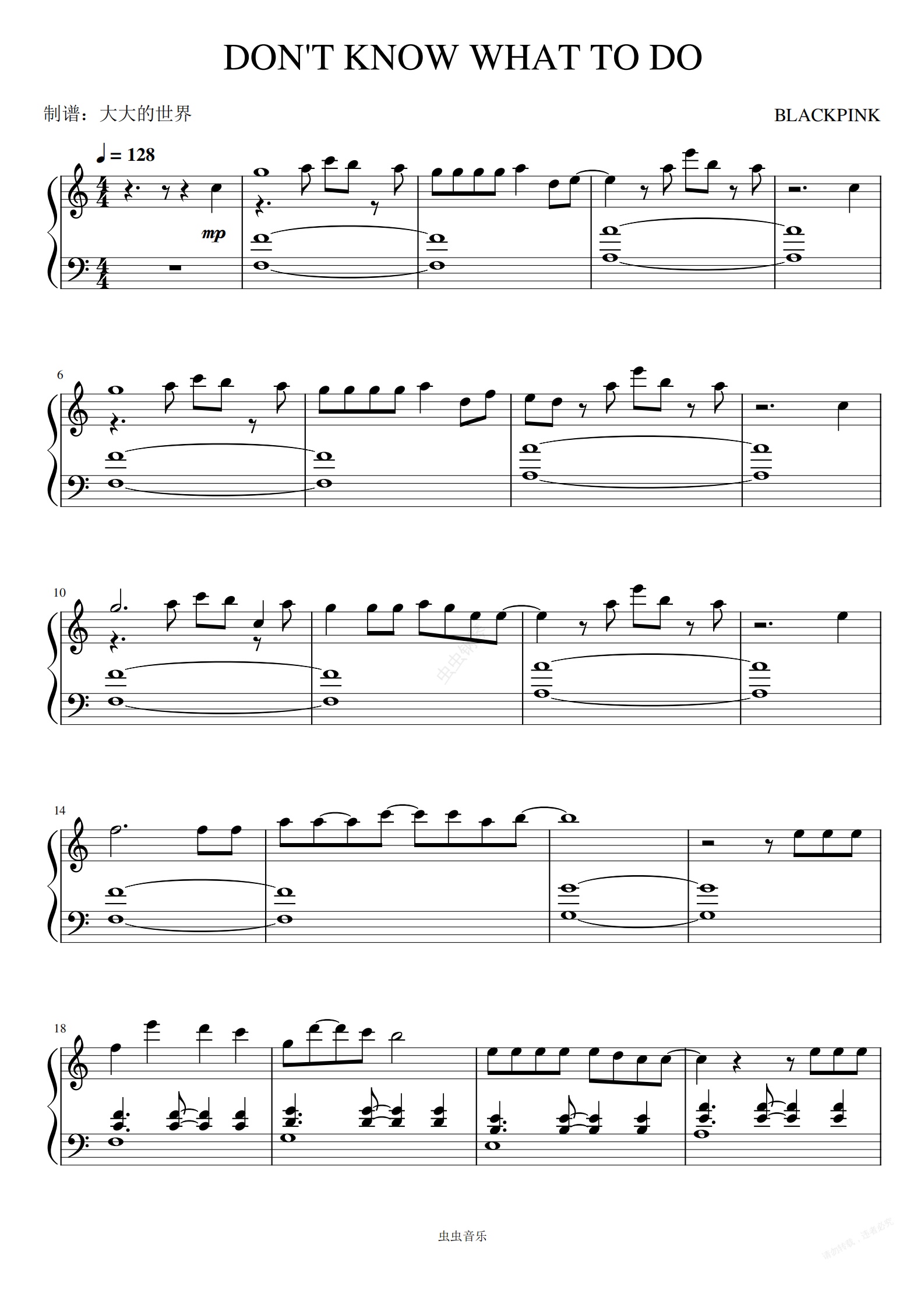 钢琴谱:DON'T KNOW WHAT TO DO【C调】