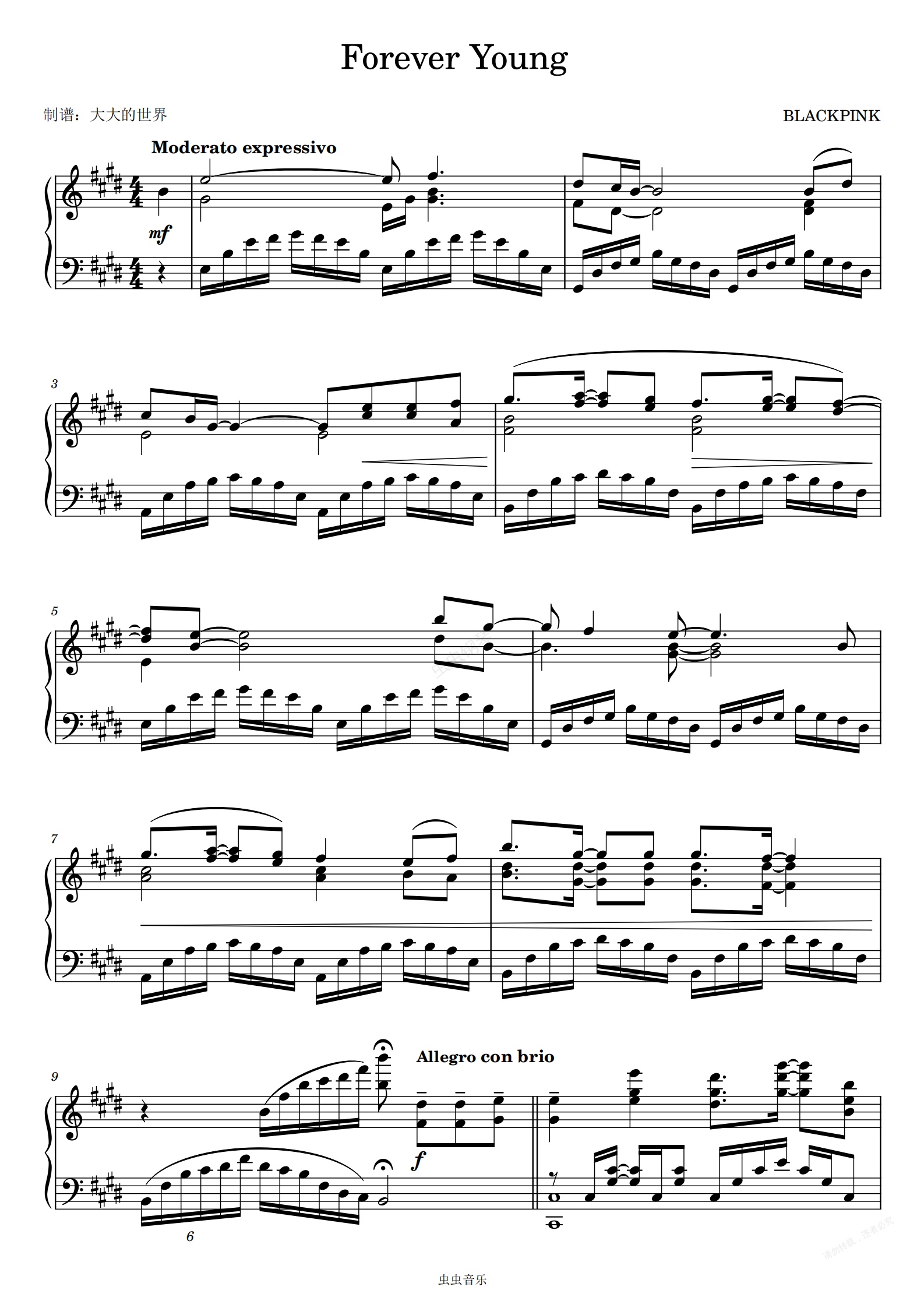 钢琴谱:Forever Young