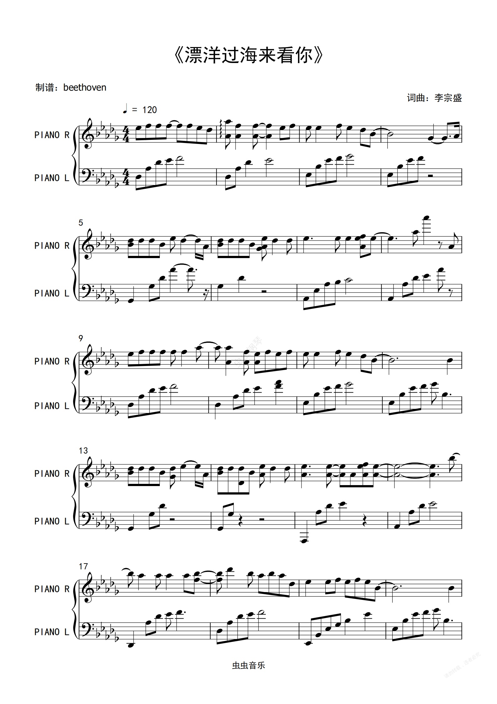 钢琴谱:漂洋过海来看你_李宗盛钢琴独奏