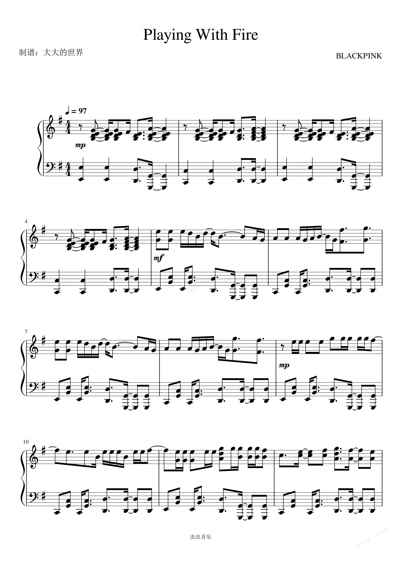 钢琴谱:Playing With Fire