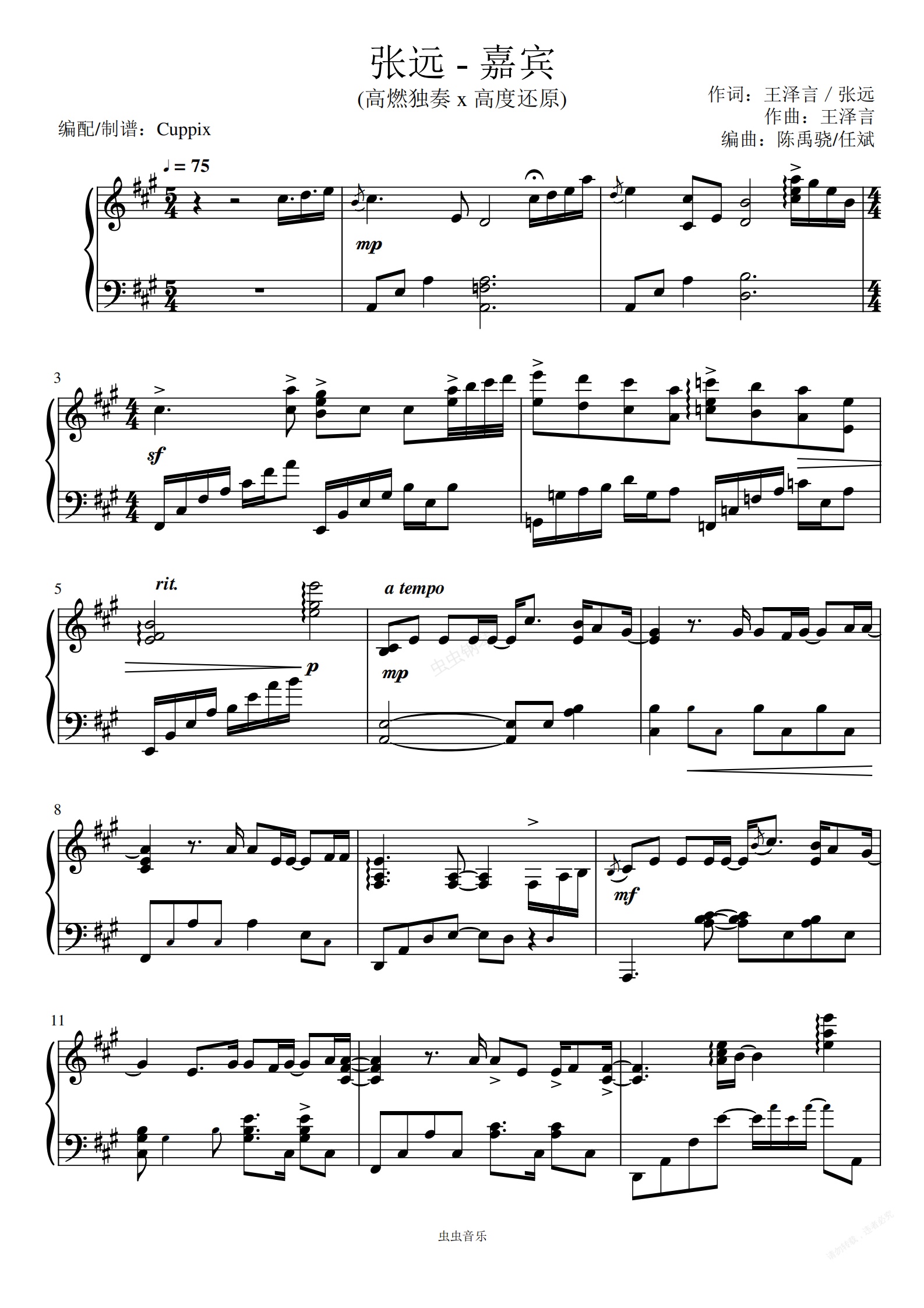 钢琴谱:张远《嘉宾》高燃独奏 x 高度还原(Cuppix改编)