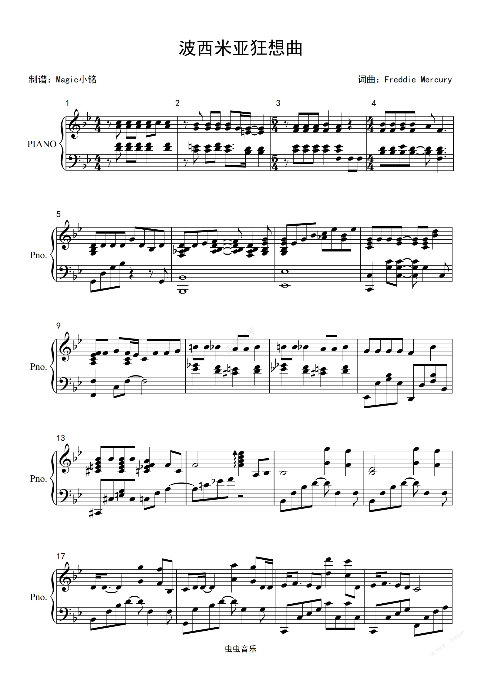 钢琴谱:波西米亚狂想曲 原版电影独奏