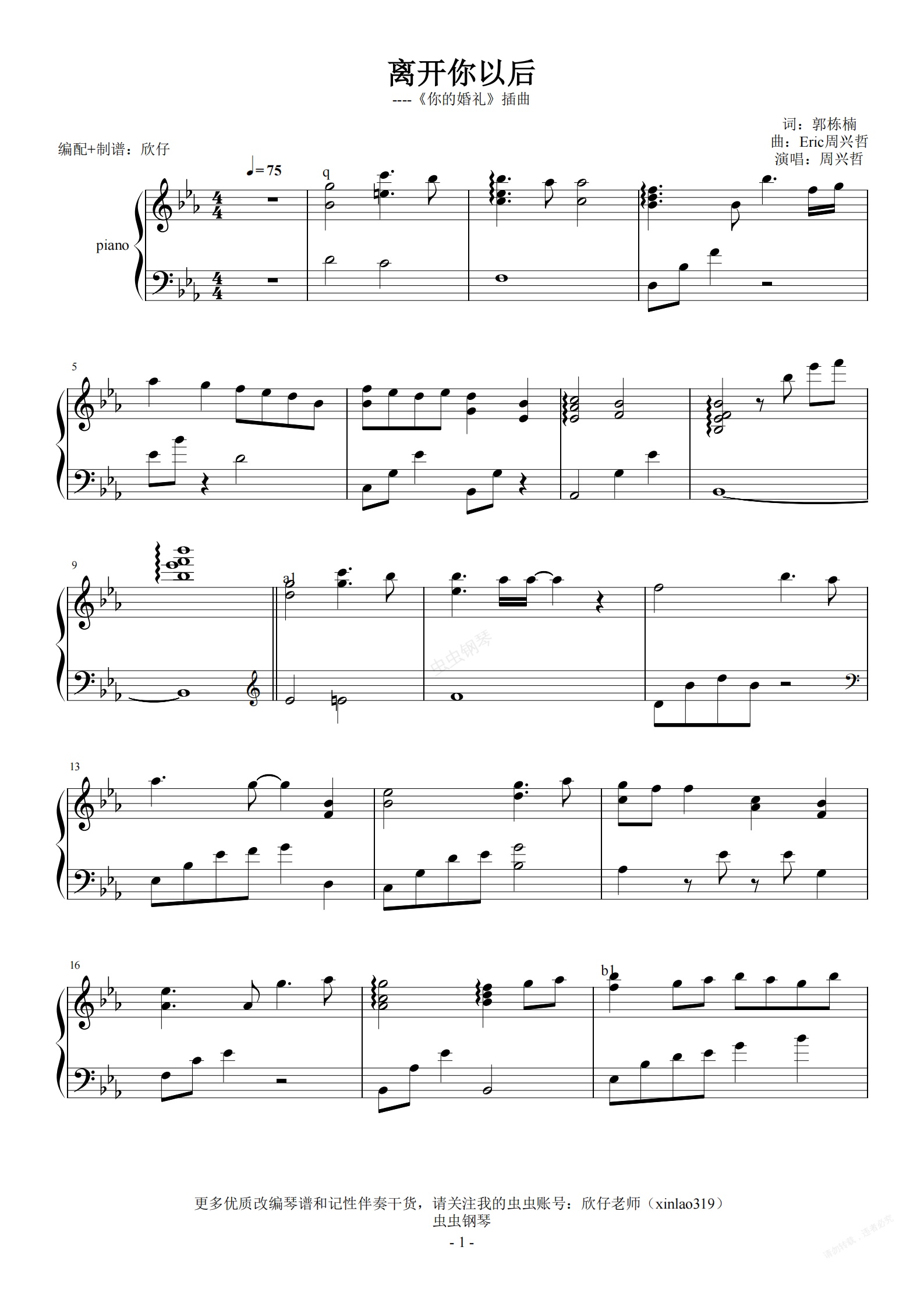 钢琴谱:周兴哲-降E《离开你以后》(《你的婚礼》插曲,精编+完整版)