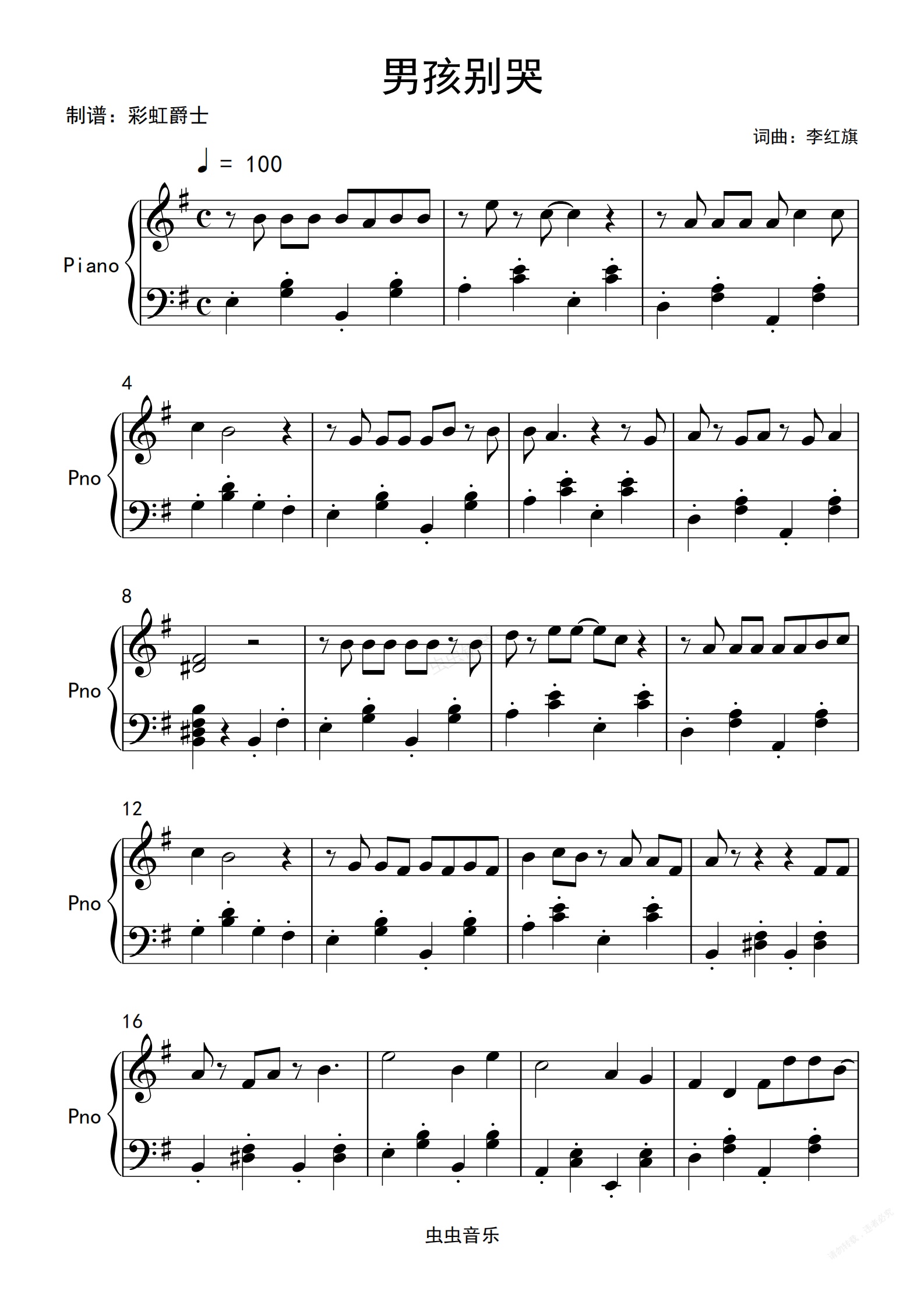 钢琴谱:海龟先生 男孩别哭-简单版-抖音