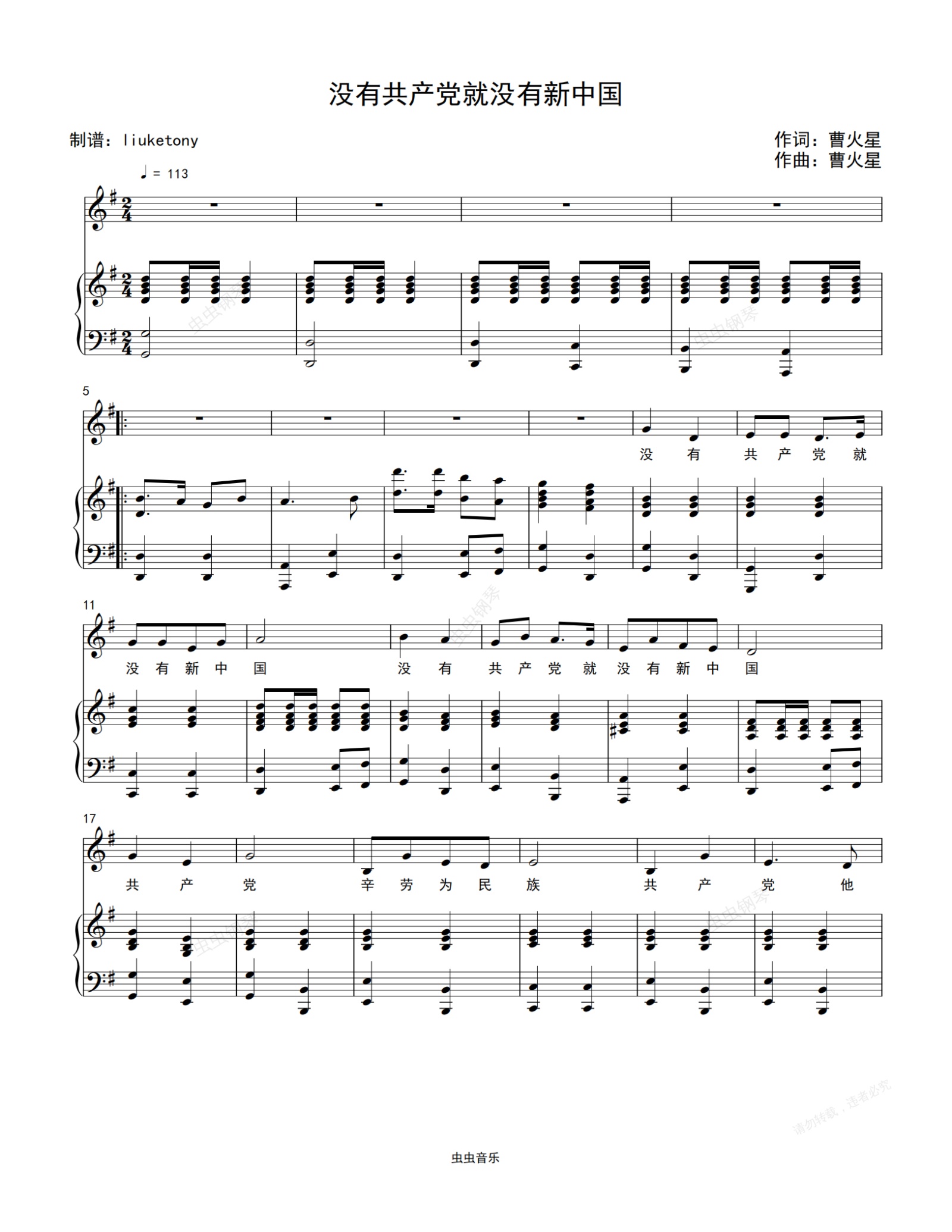 钢琴谱:没有共产党就没有新中国 钢琴伴奏谱G调