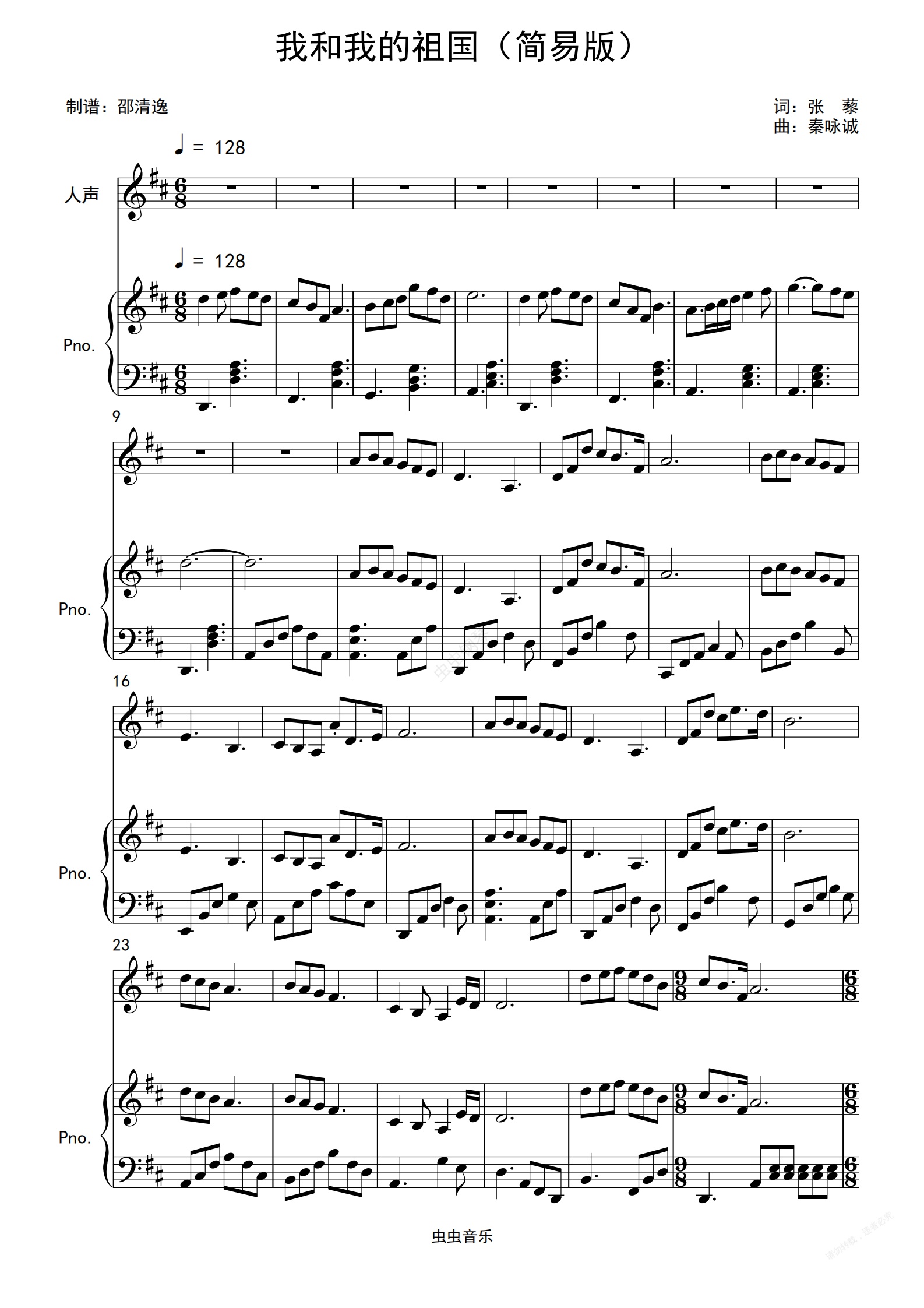 钢琴谱:我和我的祖国(简易版)