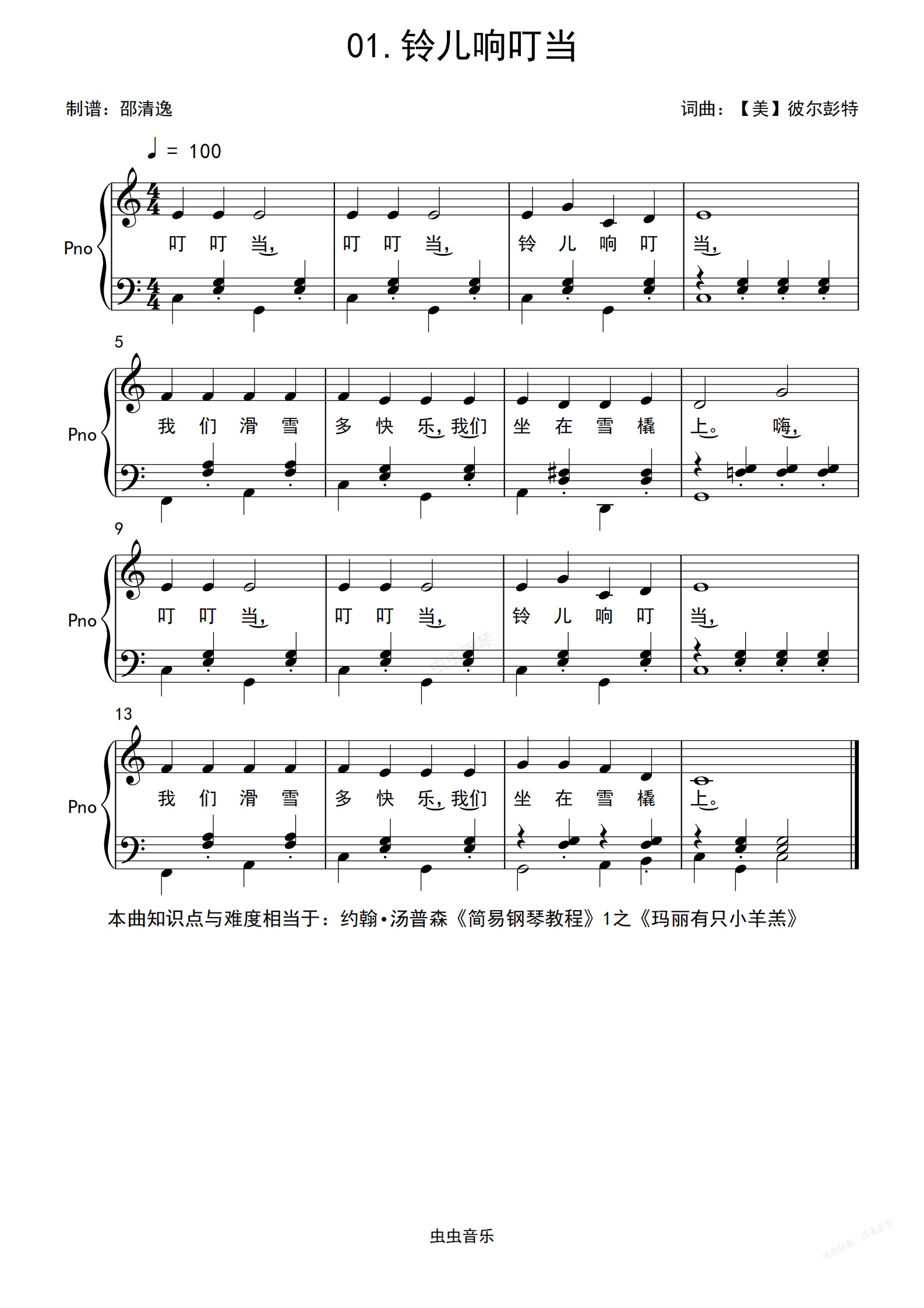 钢琴谱:铃儿响叮当 Jingle Bells