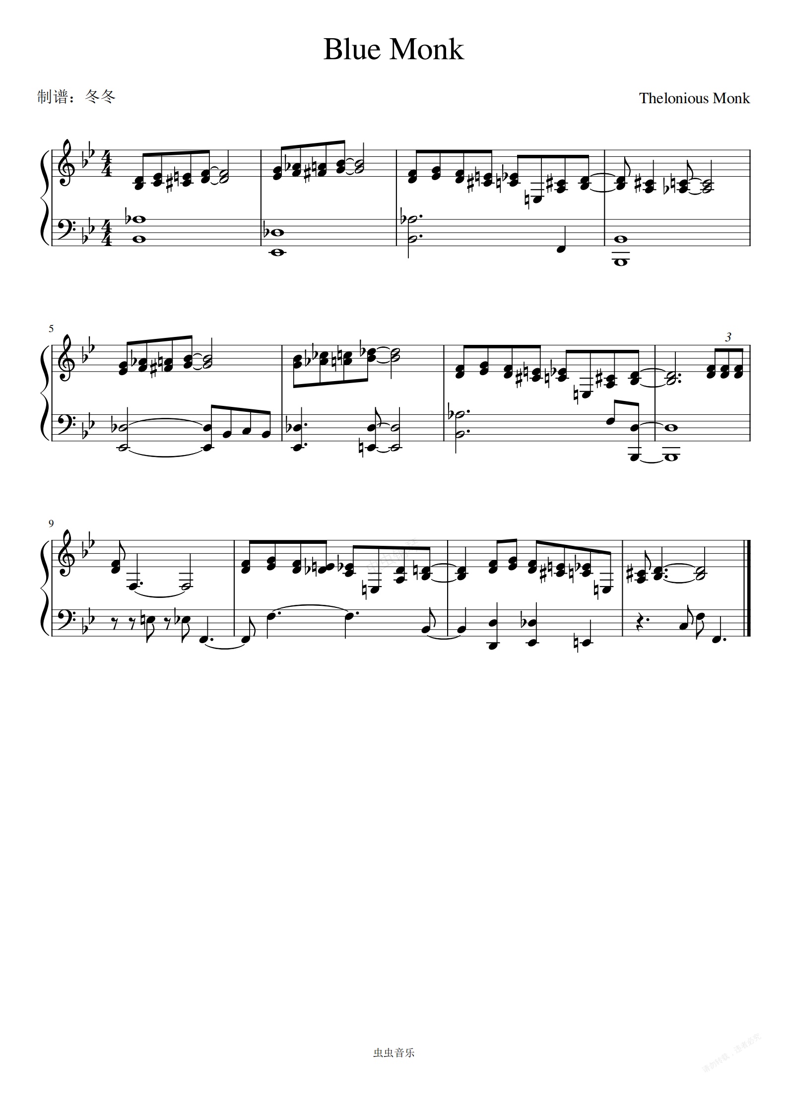 钢琴谱:Blue Monk
