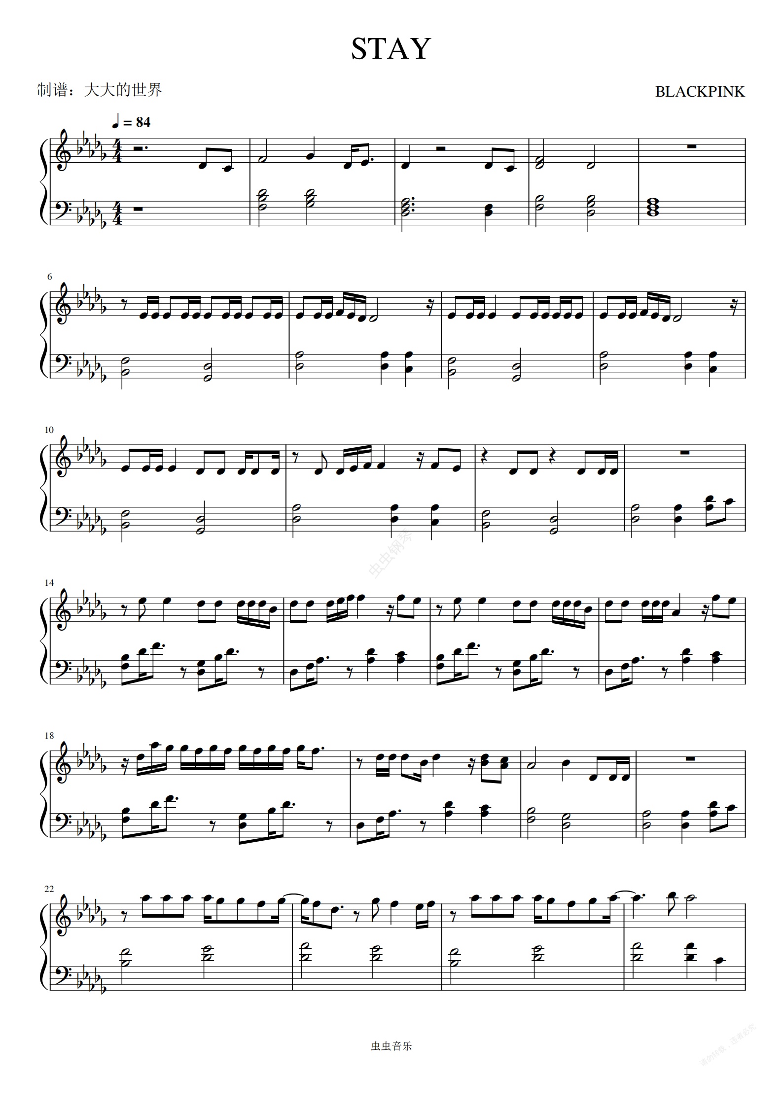 钢琴谱:STAY-BLACKPINK