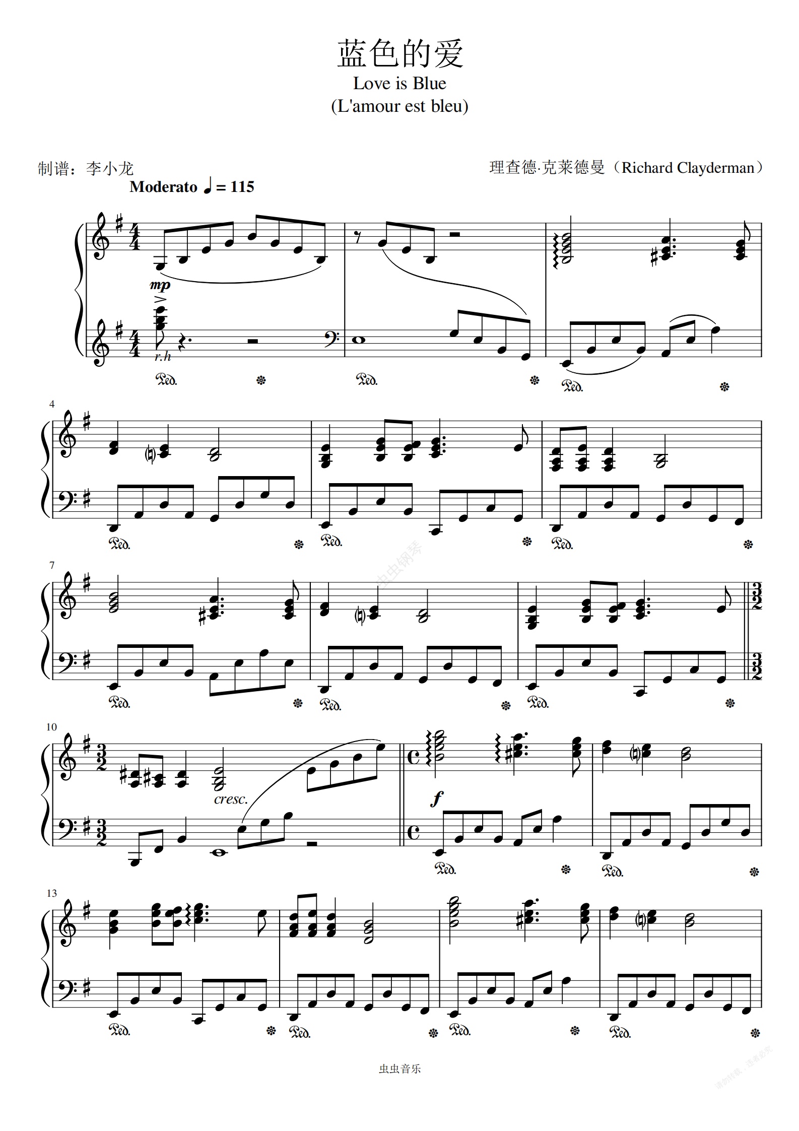 钢琴谱:理查德·克莱德曼-《蓝色的爱》Love is Blue (L'amour est bleu)