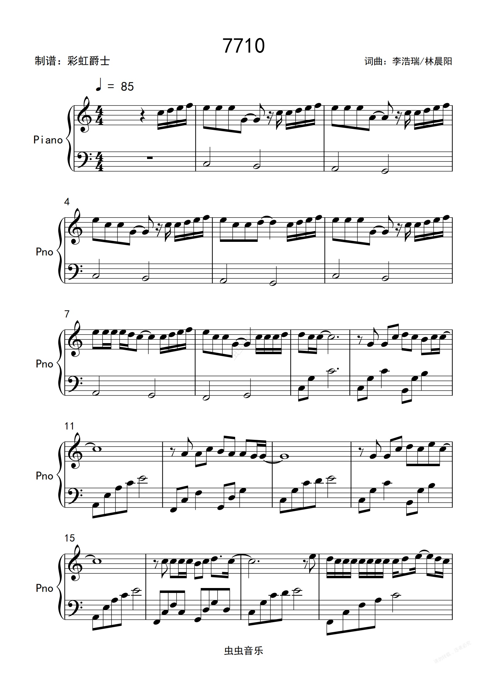 钢琴谱:7710 C调简单版 好乐无荒 尹露浠