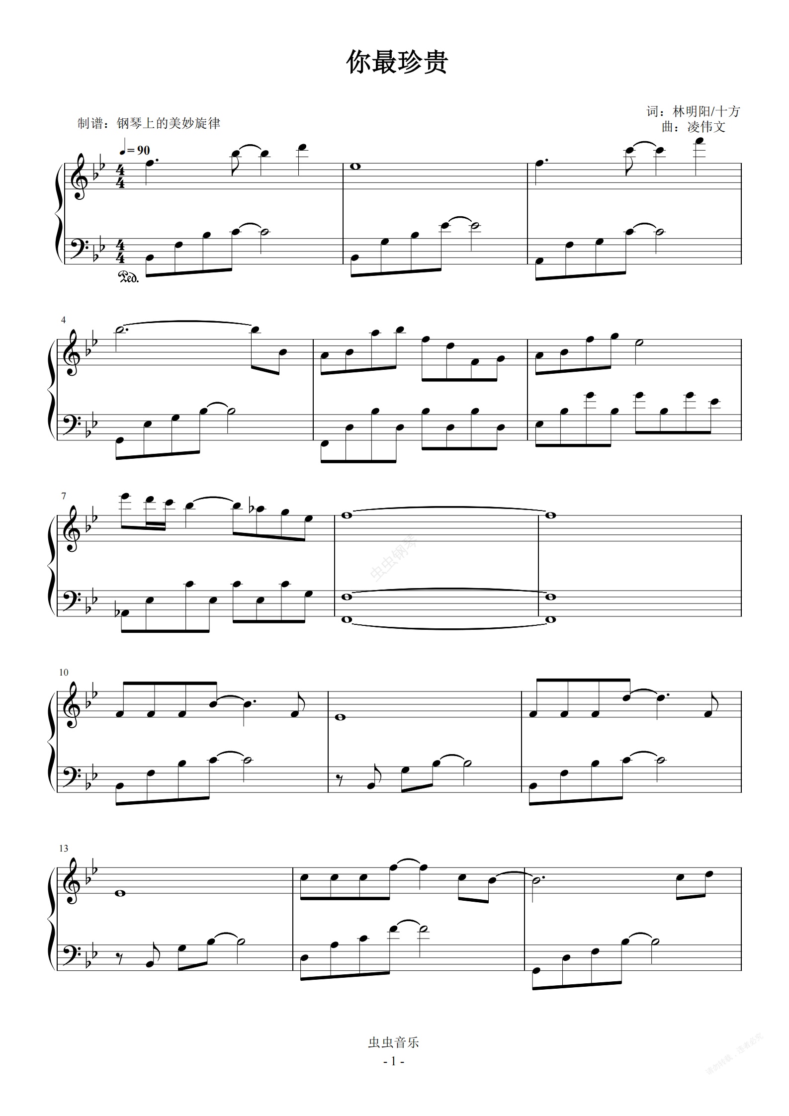 钢琴谱:你最珍贵 简易版 张学友 高慧君 流行经典