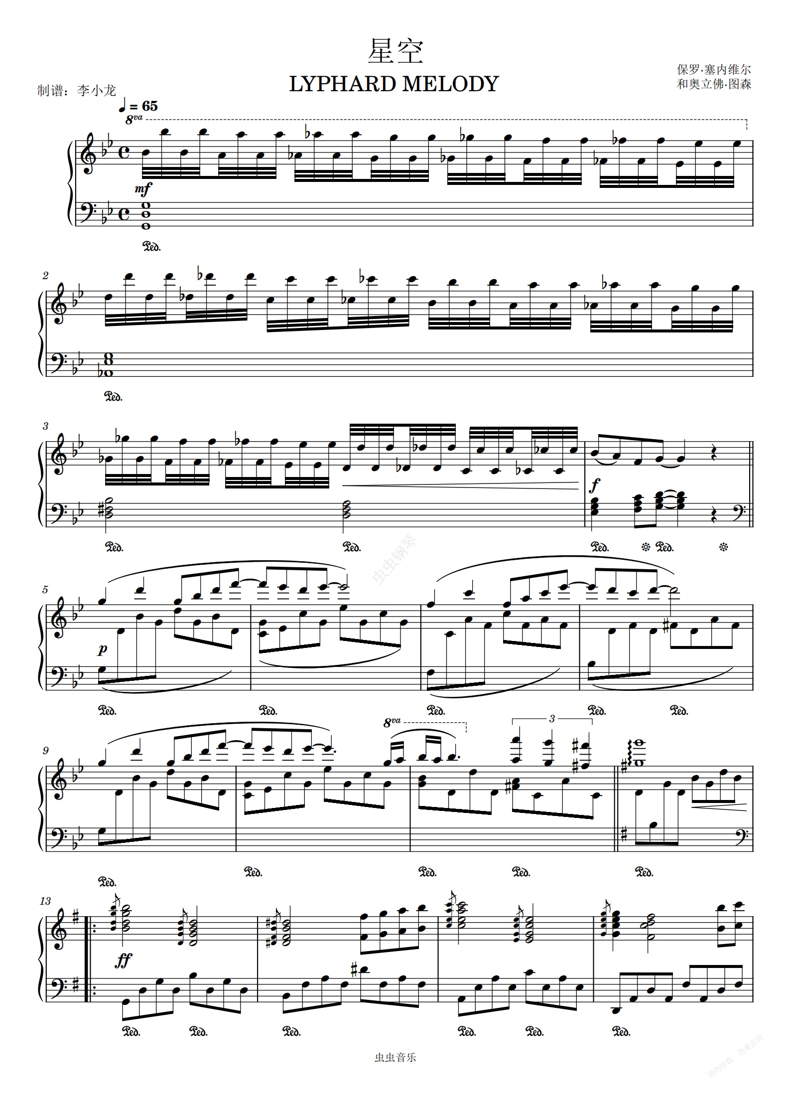 钢琴谱:《星空》LYPHARD MELODY-保罗·塞内维尔 和奥立佛·图森