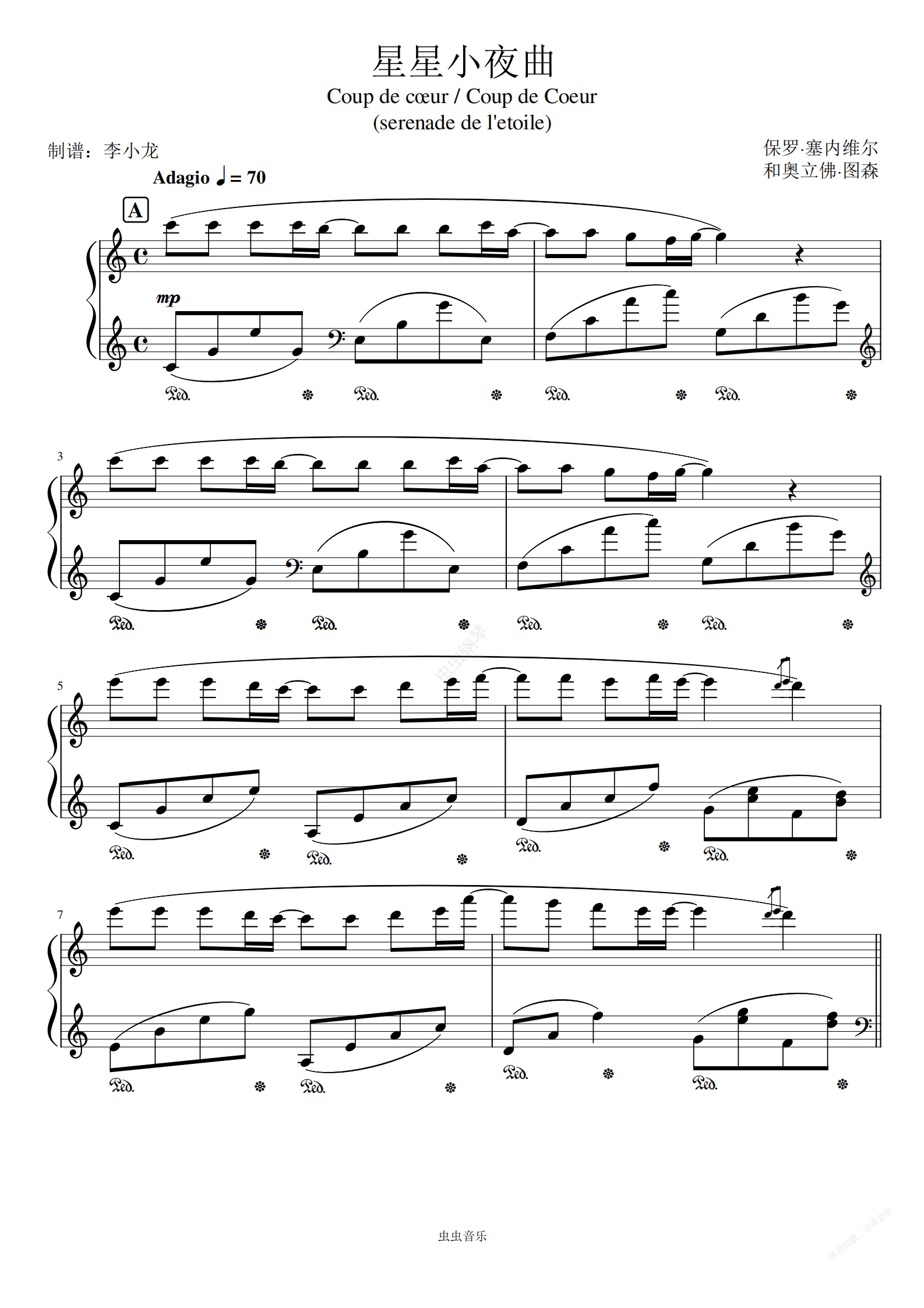 钢琴谱:《星星小夜曲》Coup de cœur / Coup de Coeur  (serenade de l'etoile)
