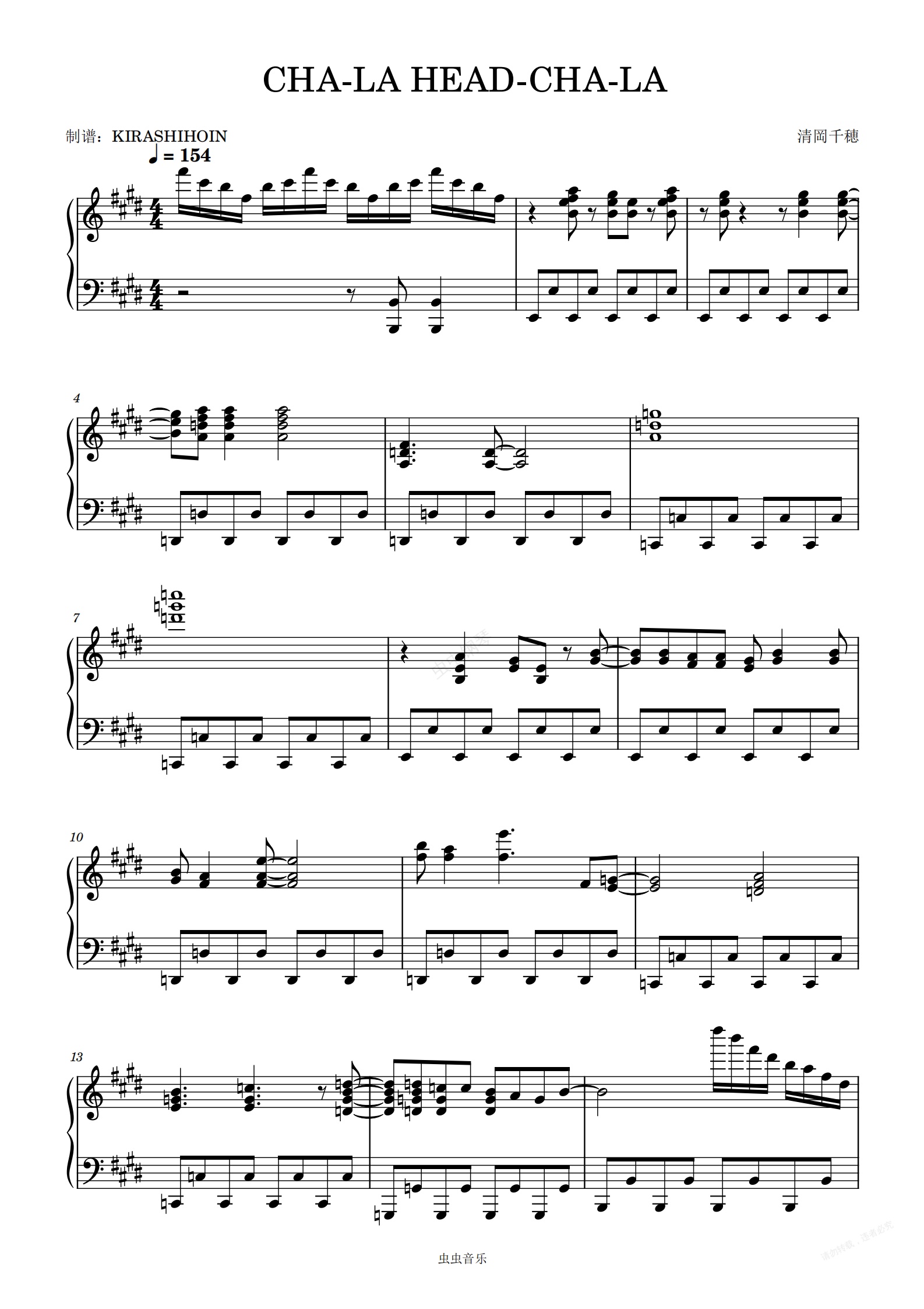 钢琴谱:CHA-LA HEAD-CHA-LA(《龙珠Z》OP)