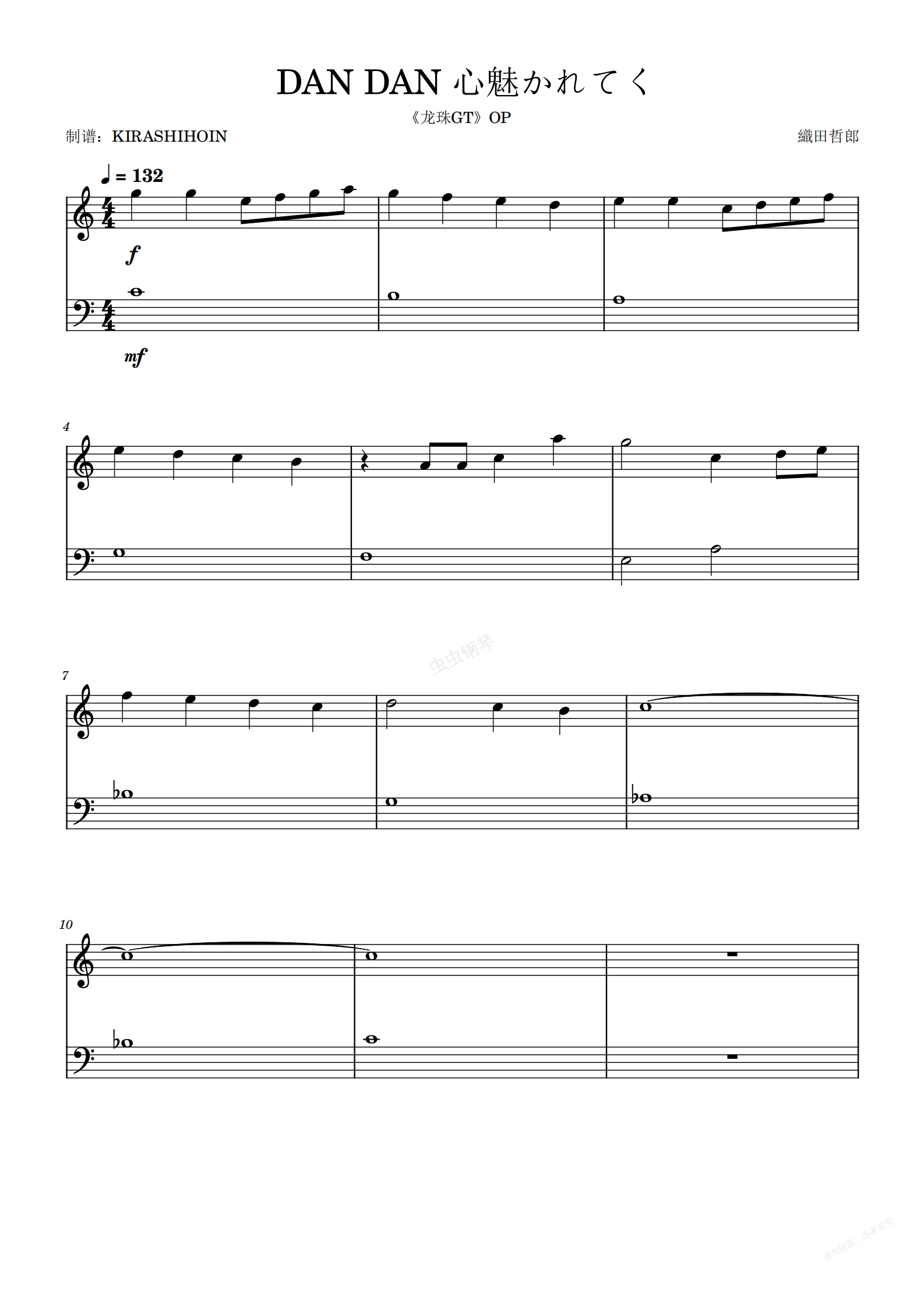 钢琴谱:DAN DAN 心魅かれてく(《龙珠GT》OP)