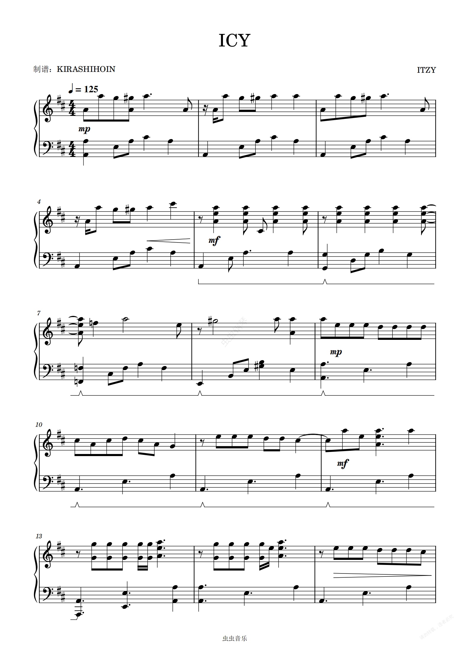 钢琴谱:ICY - ITZY