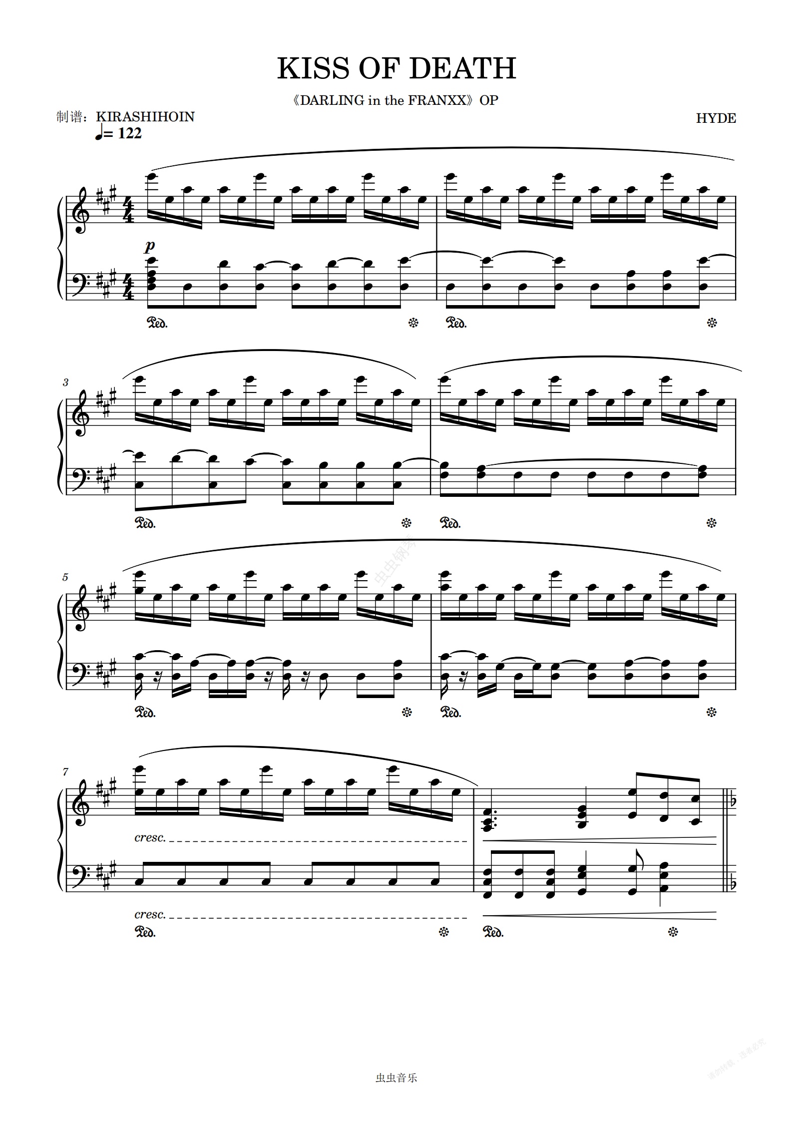 钢琴谱:KISS OF DEATH(《DARLING in the FRANXX》OP)