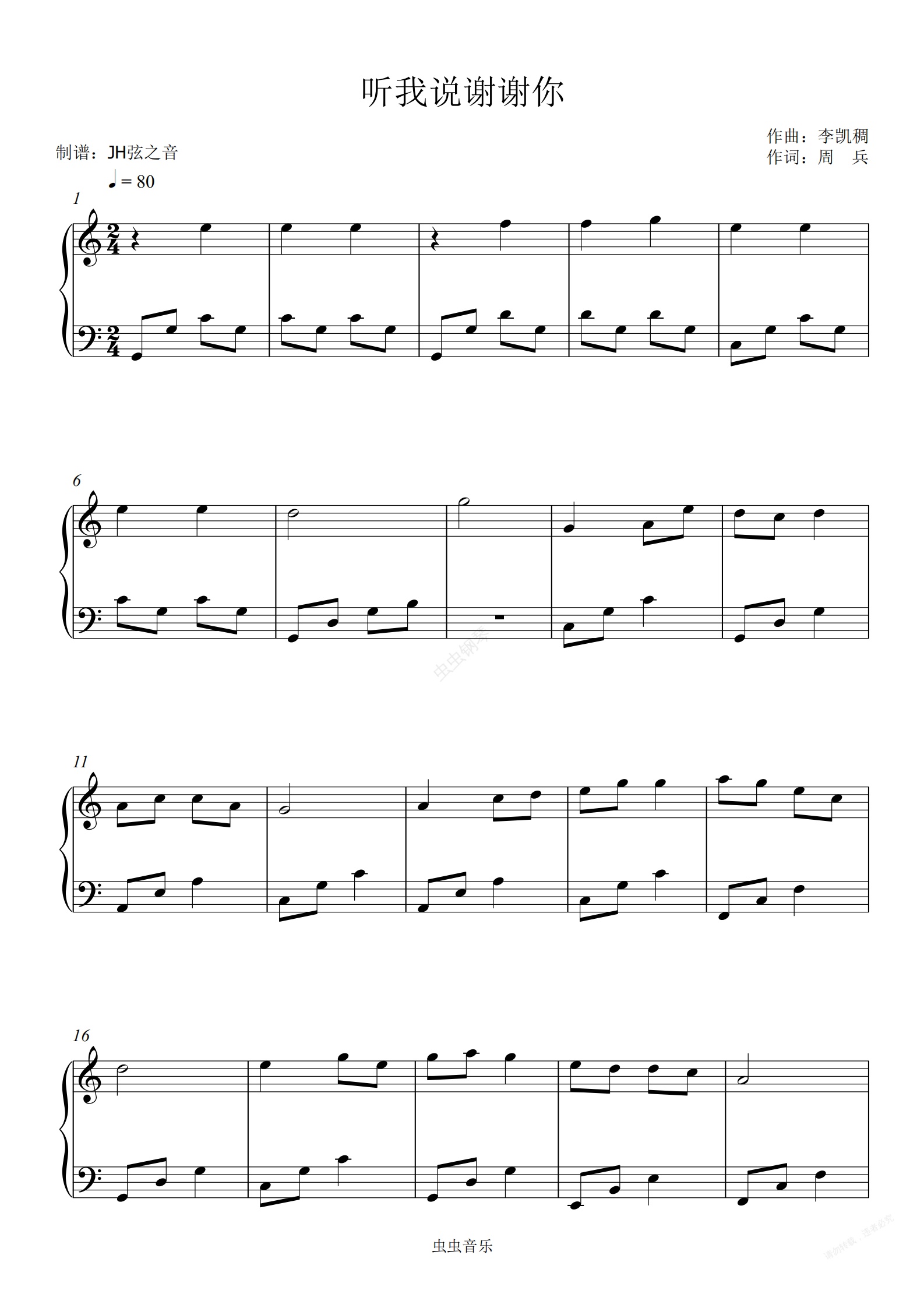 钢琴谱:《听我说谢谢你》李昕融版-C调唯美独奏