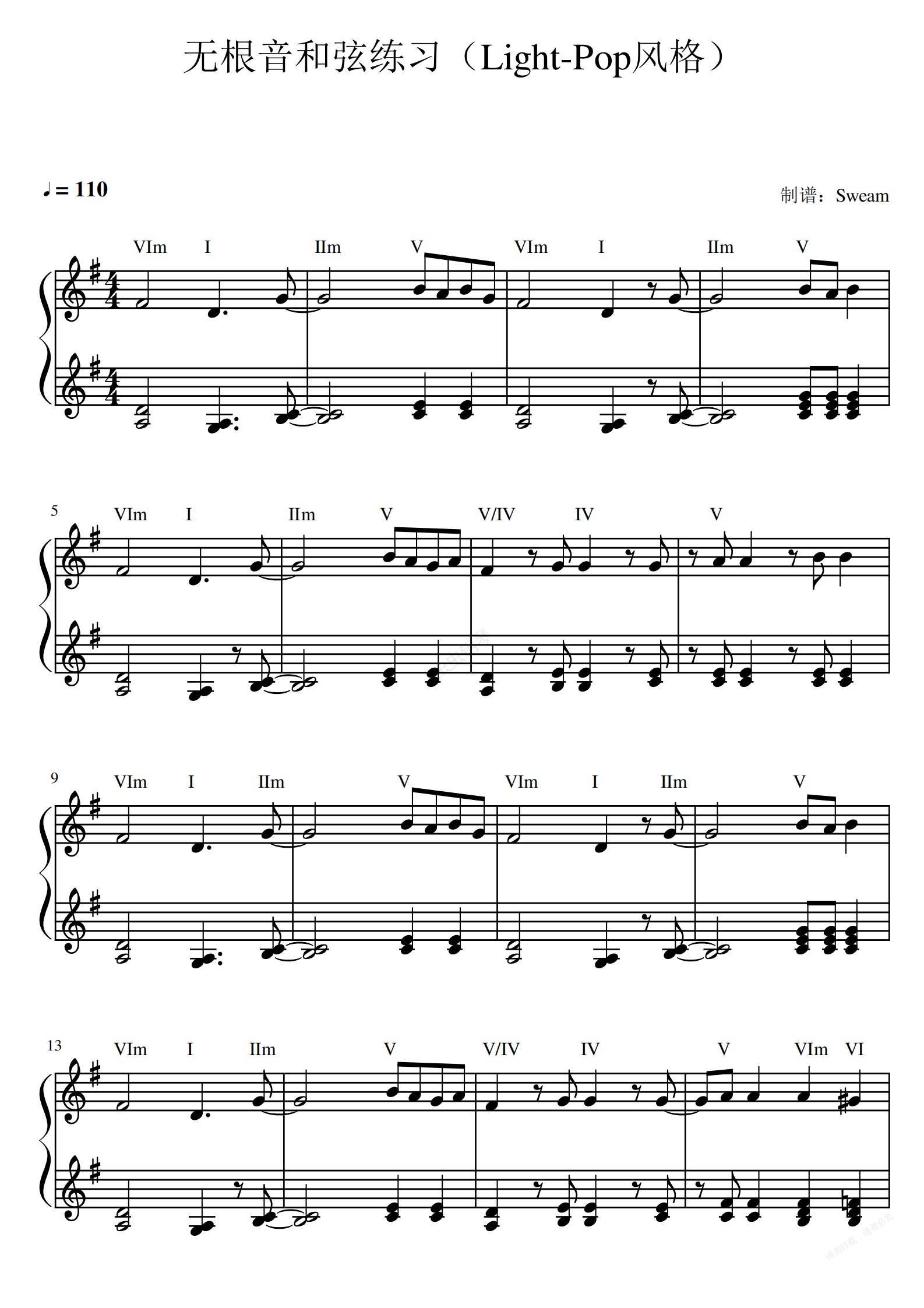 钢琴谱:无根音和弦练习(Light-Pop风格)