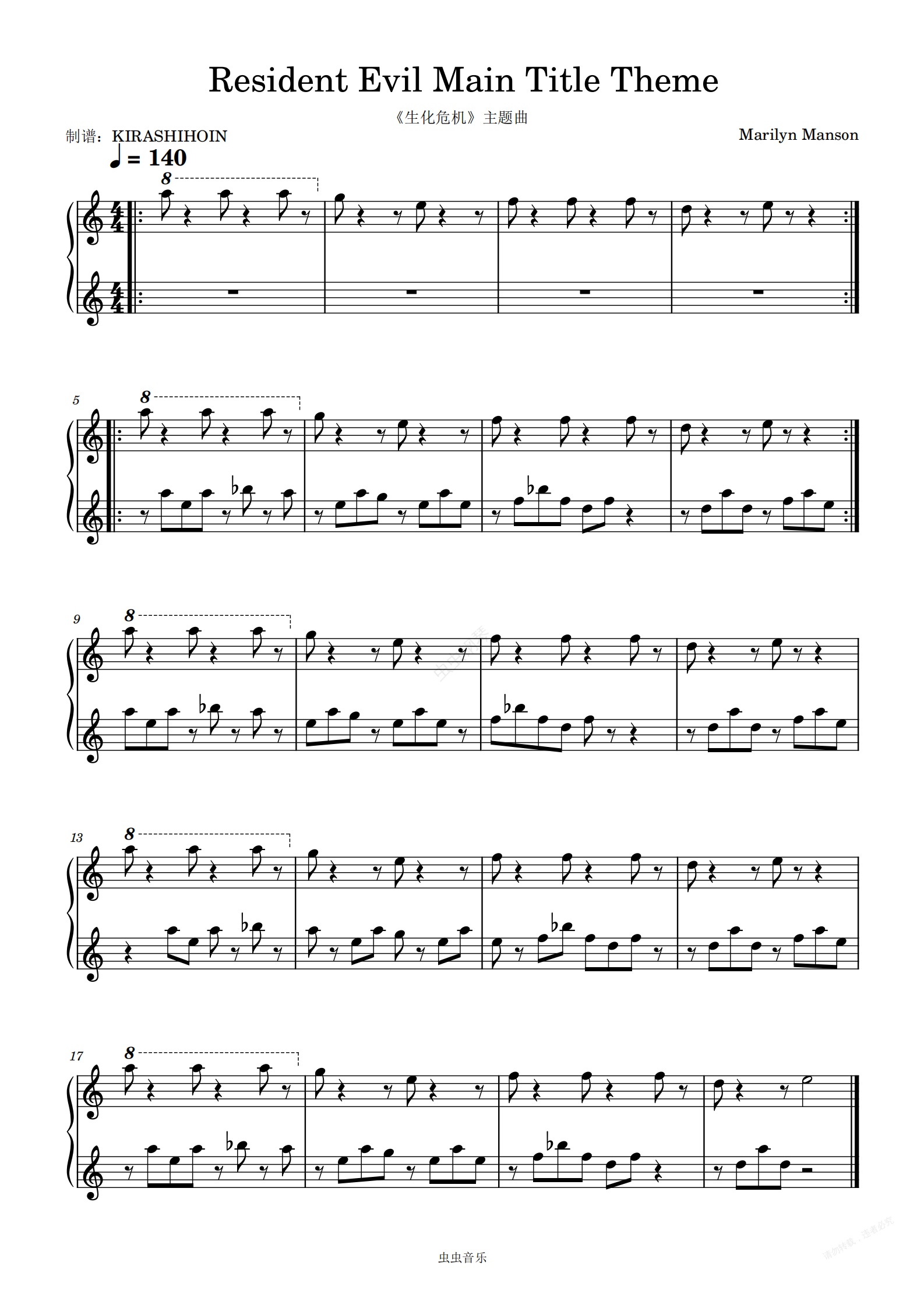 钢琴谱:Resident Evil Main Title Theme(《生化危机》主题曲)