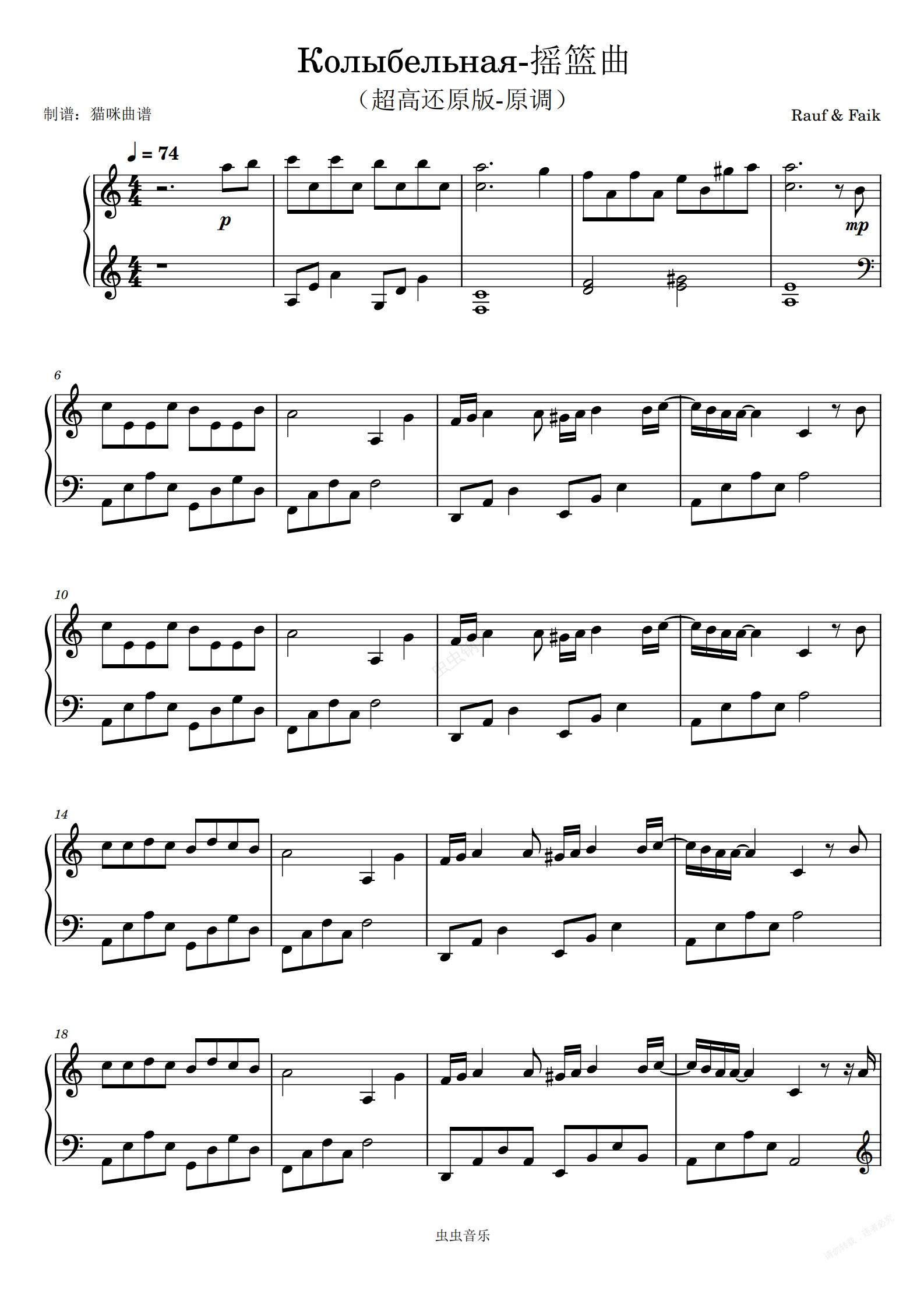 钢琴谱:俄罗斯摇篮曲-(超高还原版-C调)