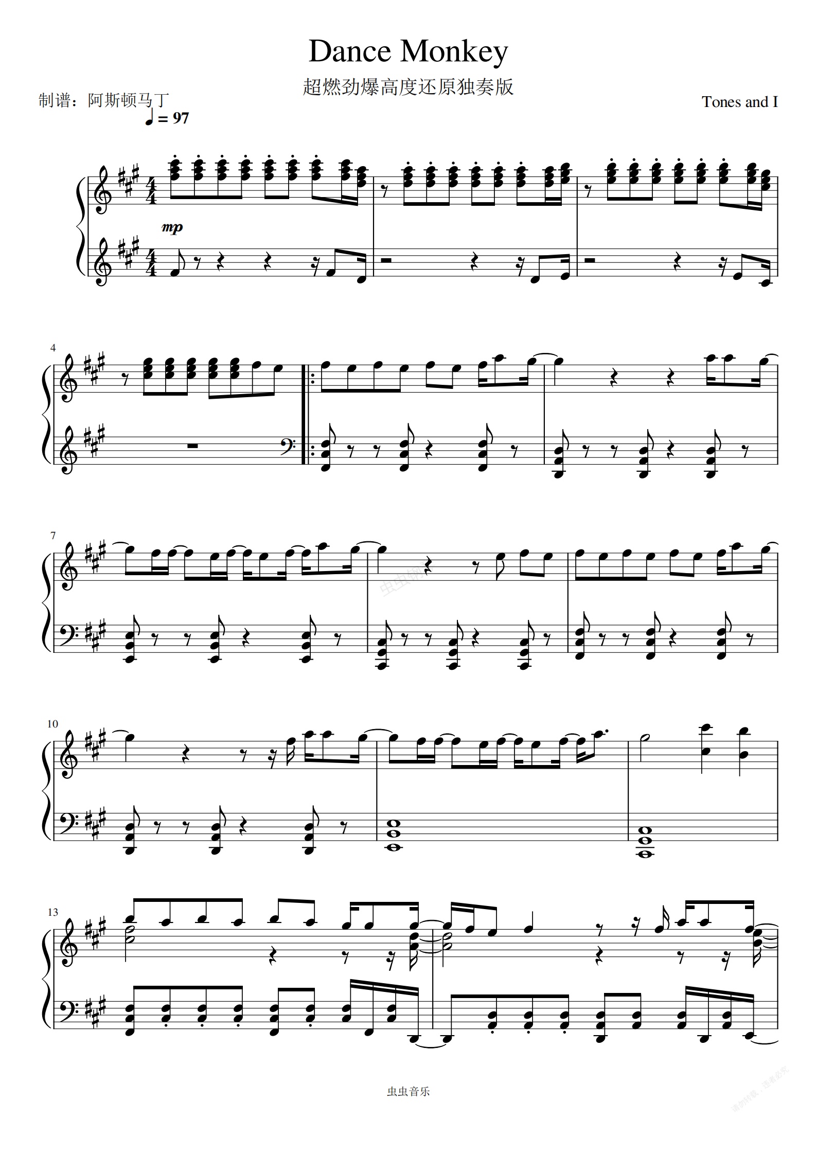 钢琴谱:《Dance Monkey》超燃劲爆高度还原独奏版