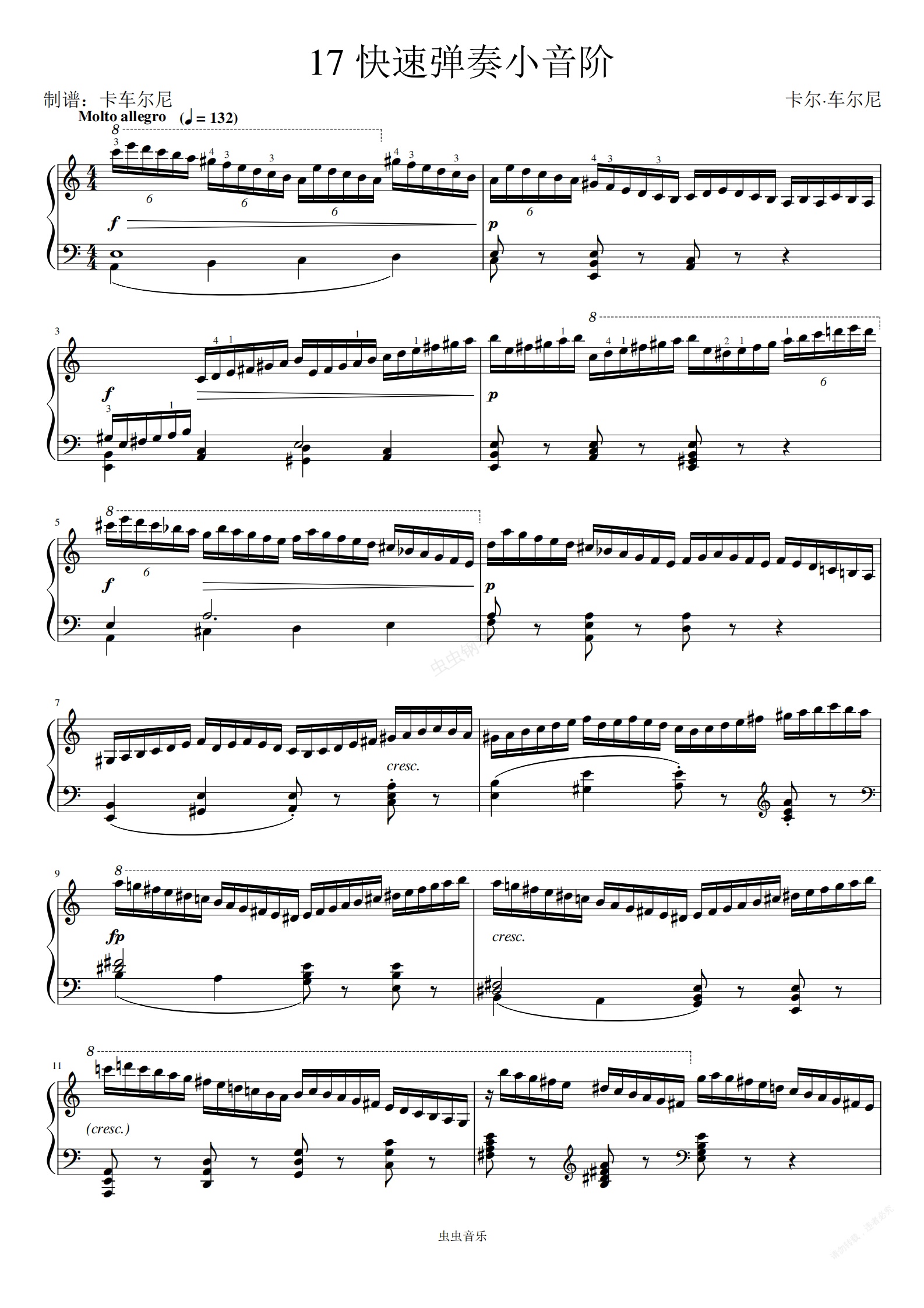 钢琴谱:车尔尼740 第17首 a小调练习曲