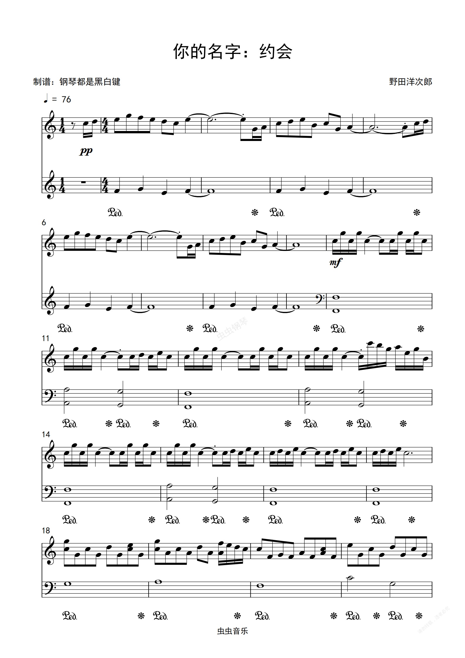 钢琴谱:你的名字-约会 【超好听超唯美钢琴曲】