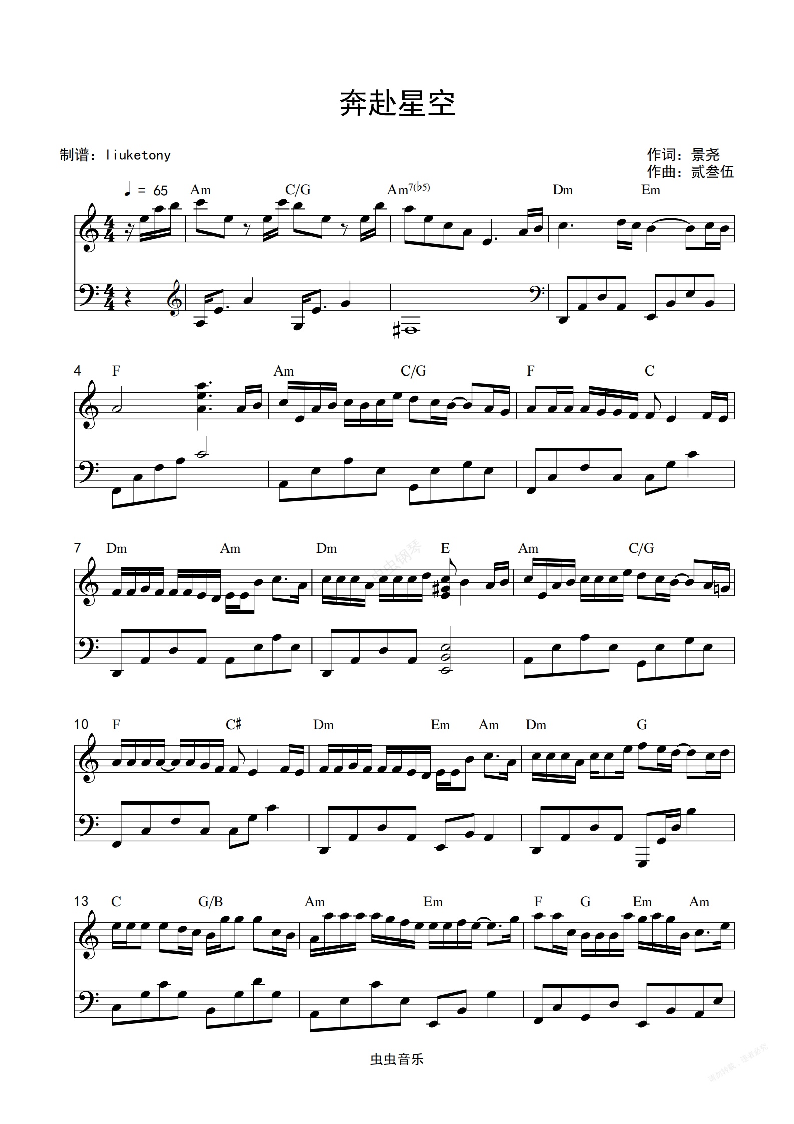 钢琴谱:奔赴星空 - 原版和声钢琴独奏 原调