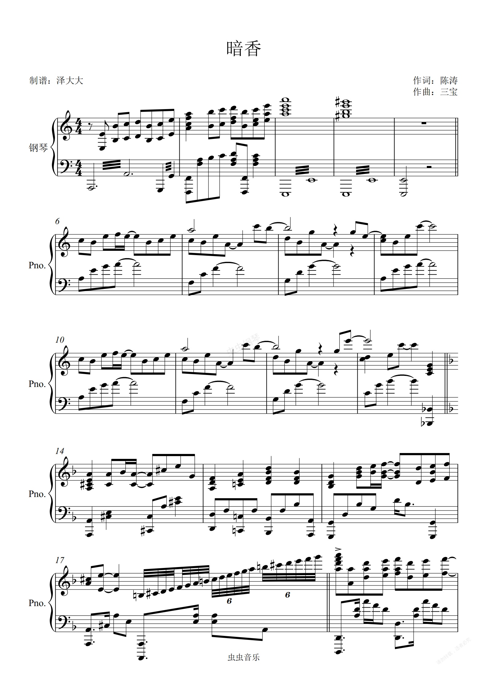 钢琴谱:暗香 罗曼耶卓 Oskar Roman Jezior 泽大大扒