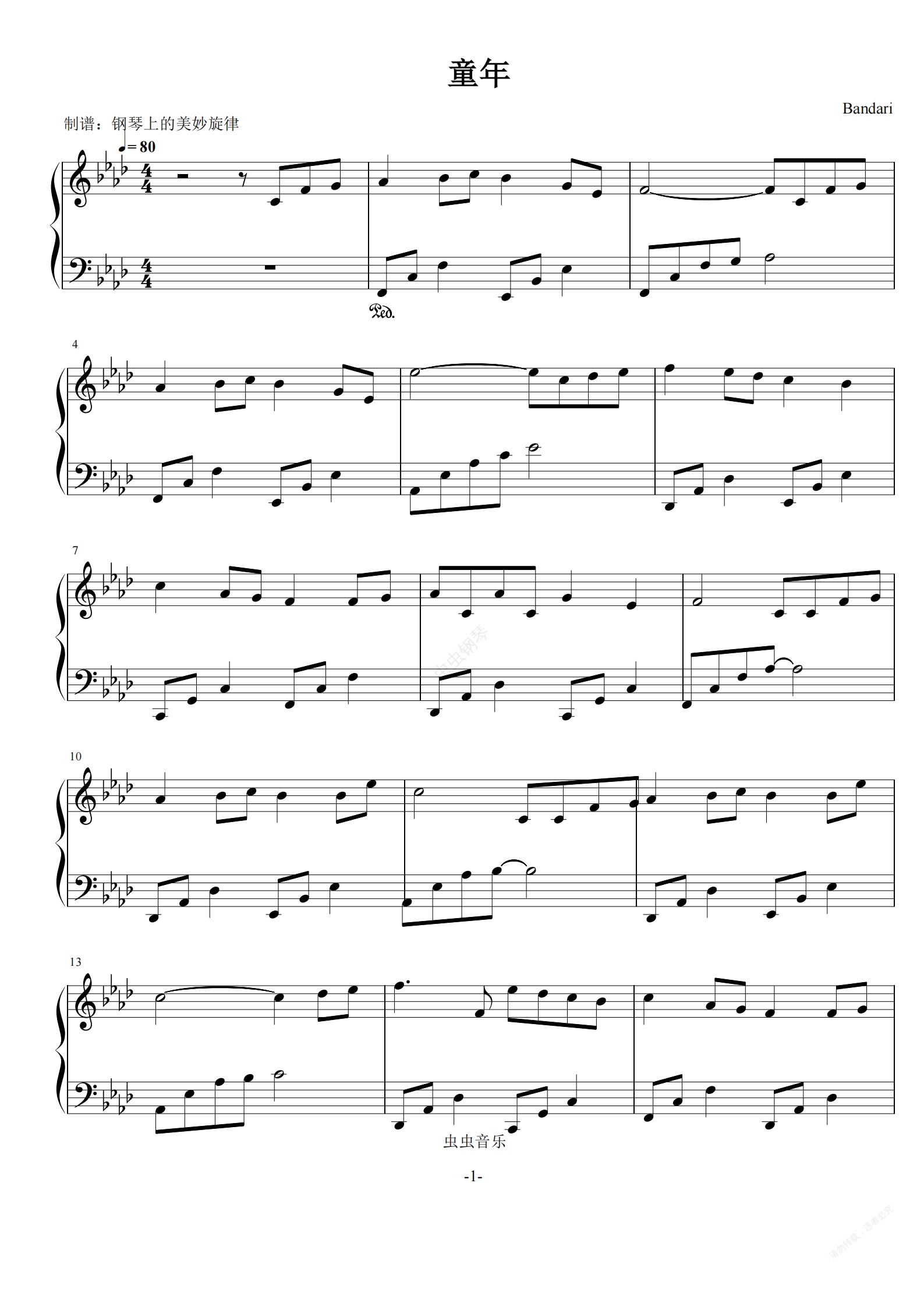 钢琴谱:童年 班得瑞 简易版  班得瑞