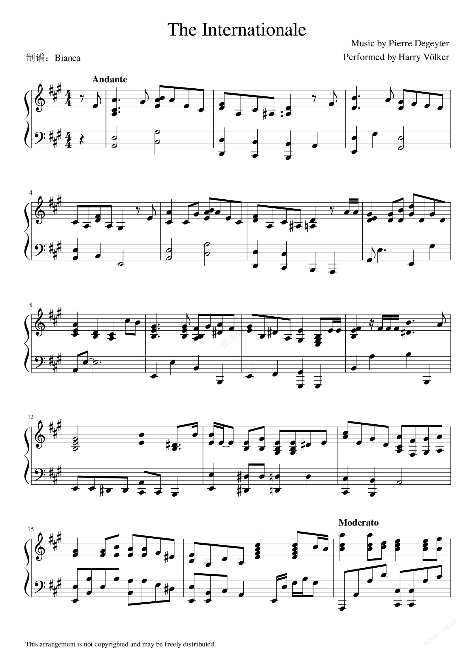 钢琴谱:国际歌The Internationale