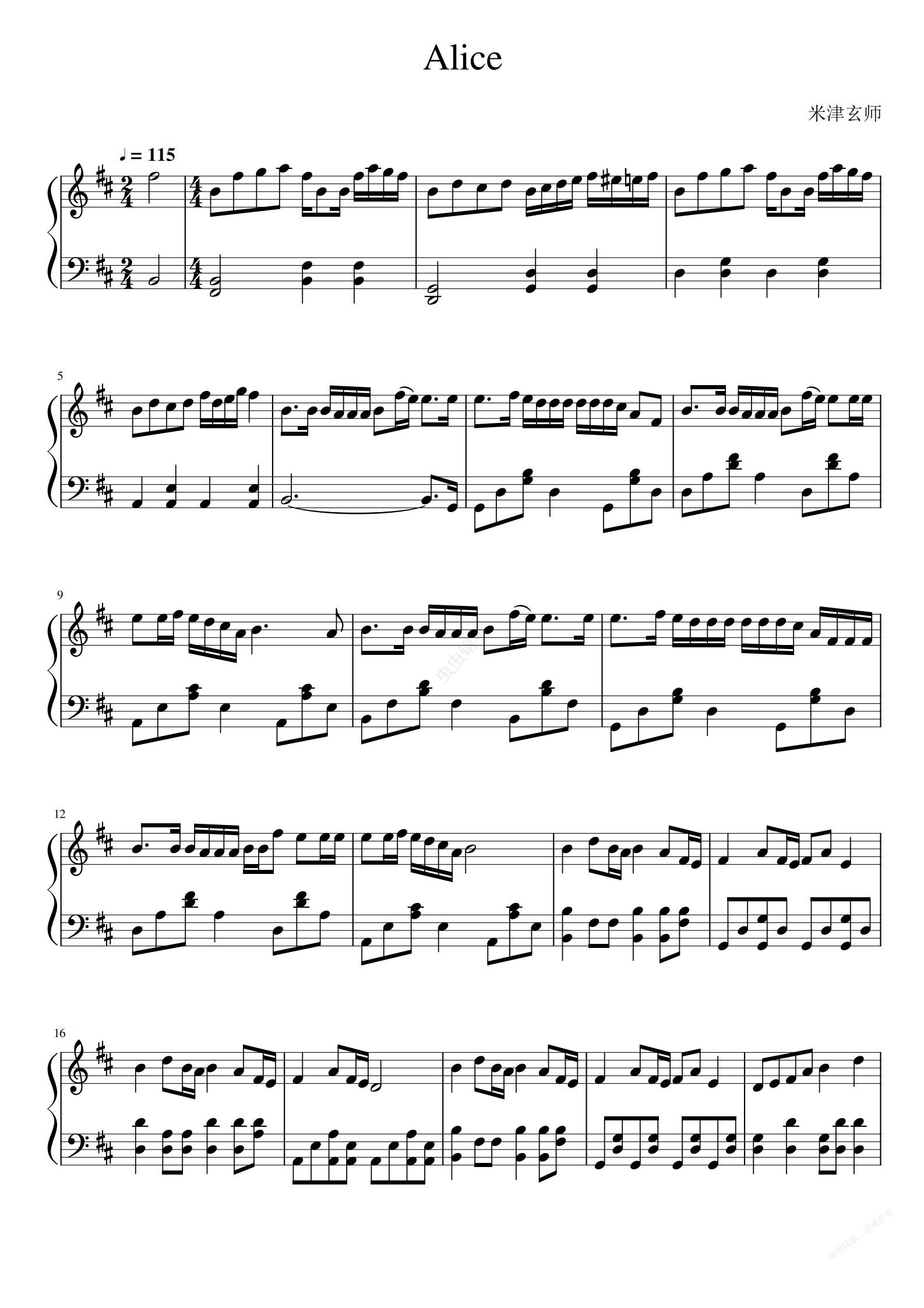 钢琴谱:【改编钢琴谱】爱丽丝 米津玄师
