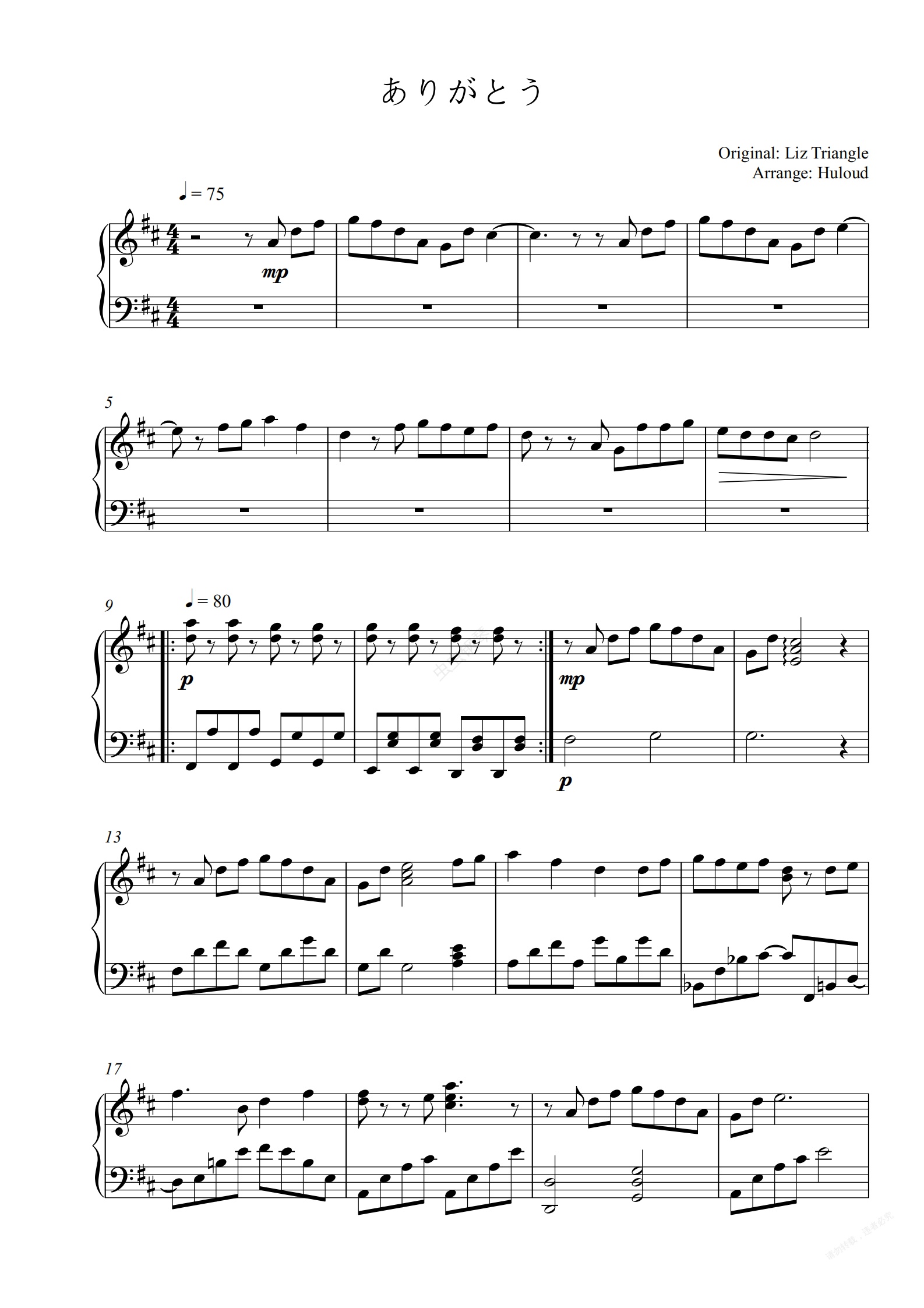 钢琴谱:【东方】LizTriangle-ありがとう 钢琴改编