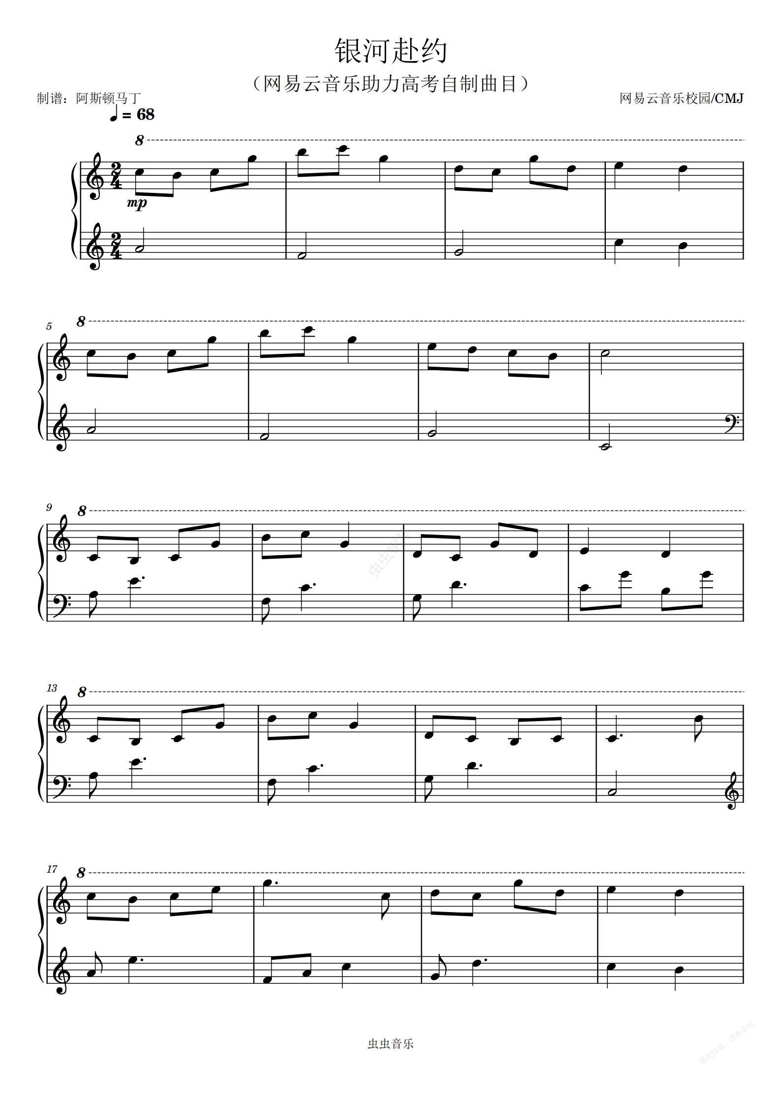 钢琴谱:《银河赴约》网易云音乐助力高考自制曲目