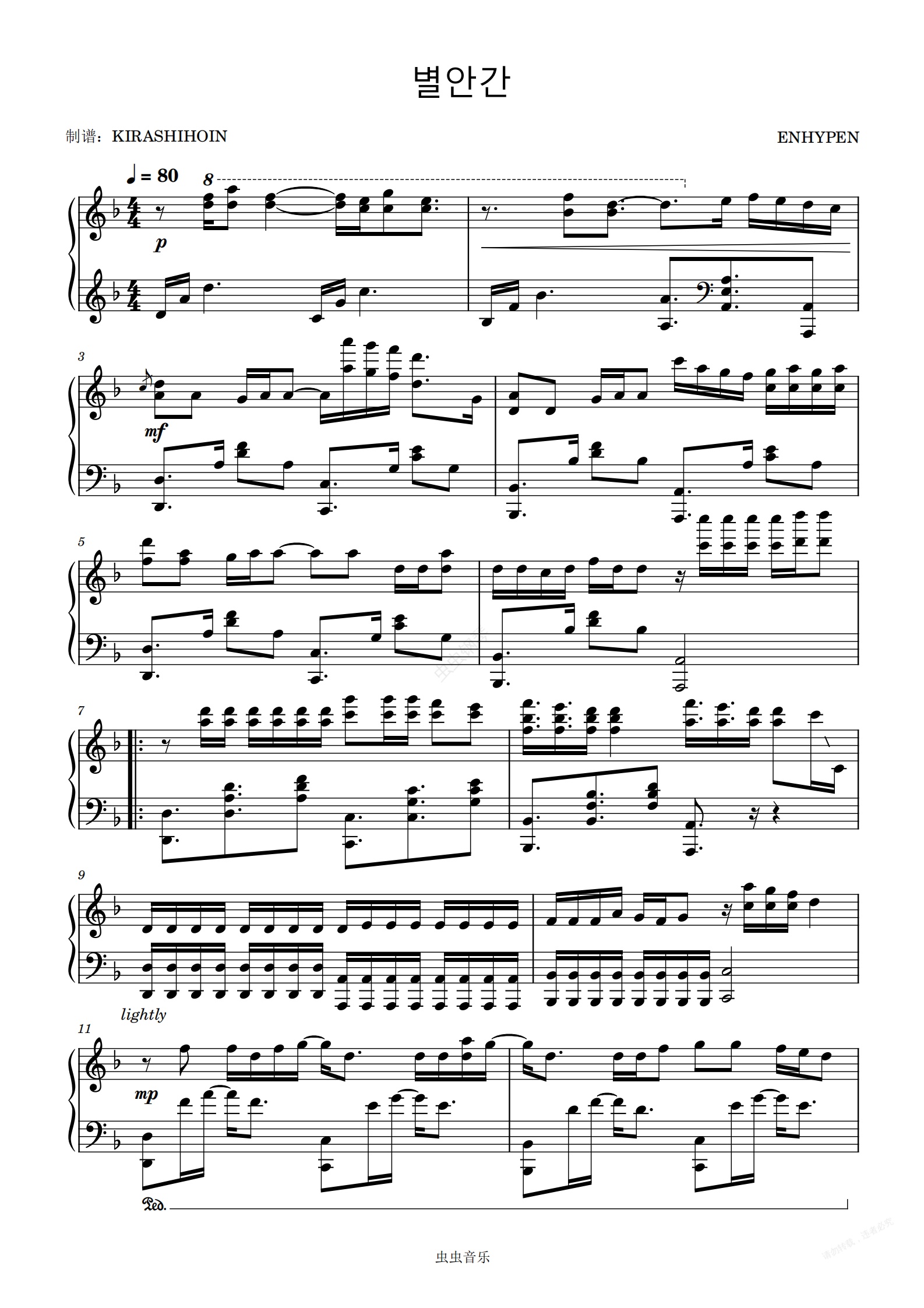 钢琴谱:Mixed Up/별안간[F调] - ENHYPEN