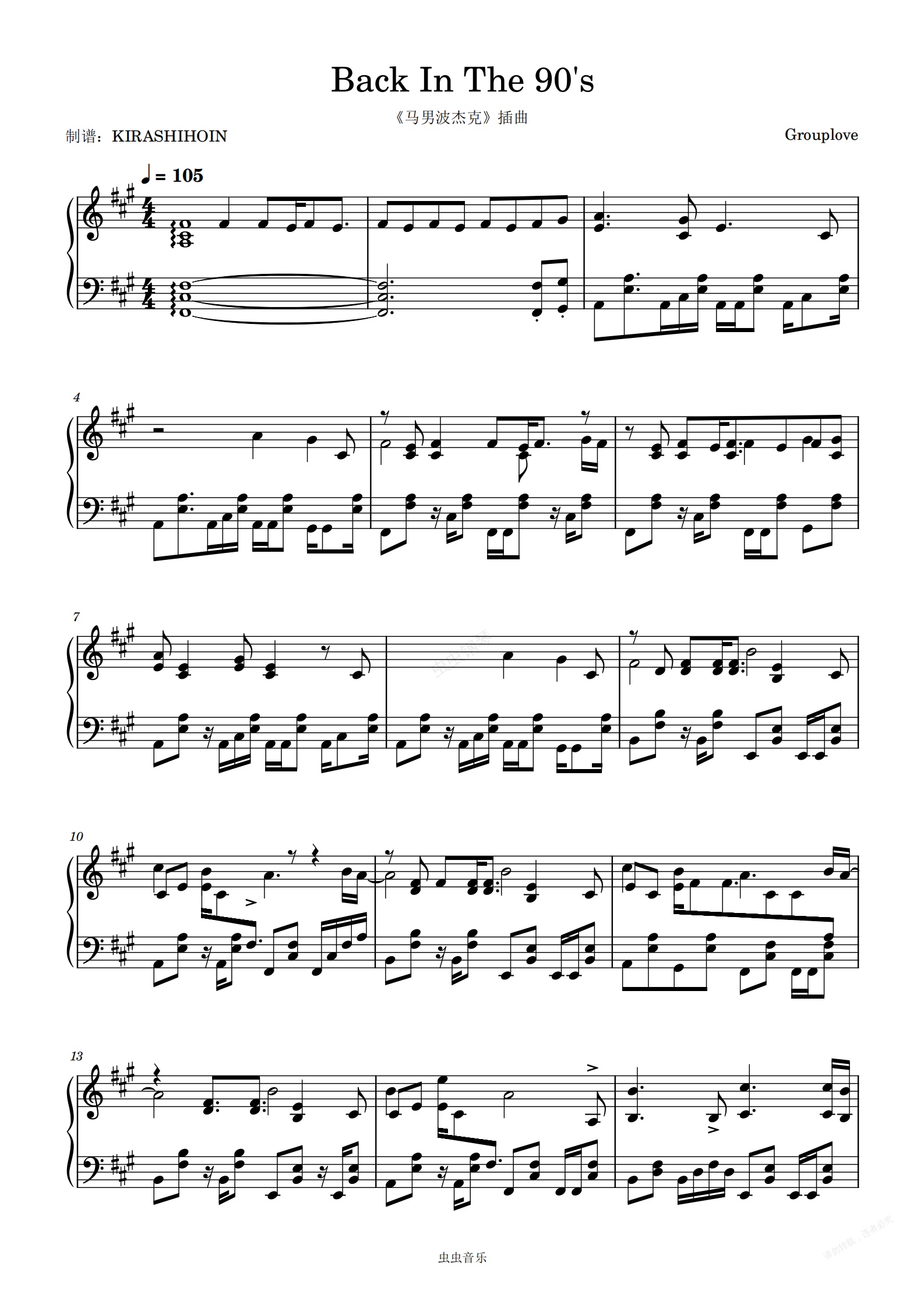 钢琴谱:Back In The 90's(《马男波杰克》插曲)