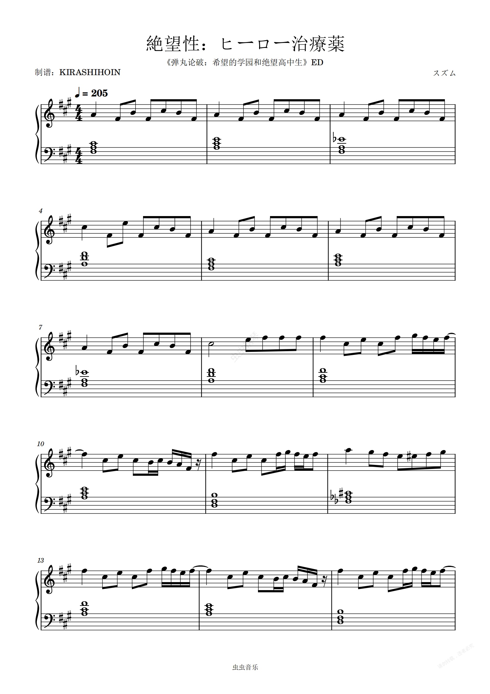 钢琴谱:絶望性:ヒーロー治療薬/绝望性:英雄治疗药(《弹丸论破:希望的学园和绝望高中生》ED)