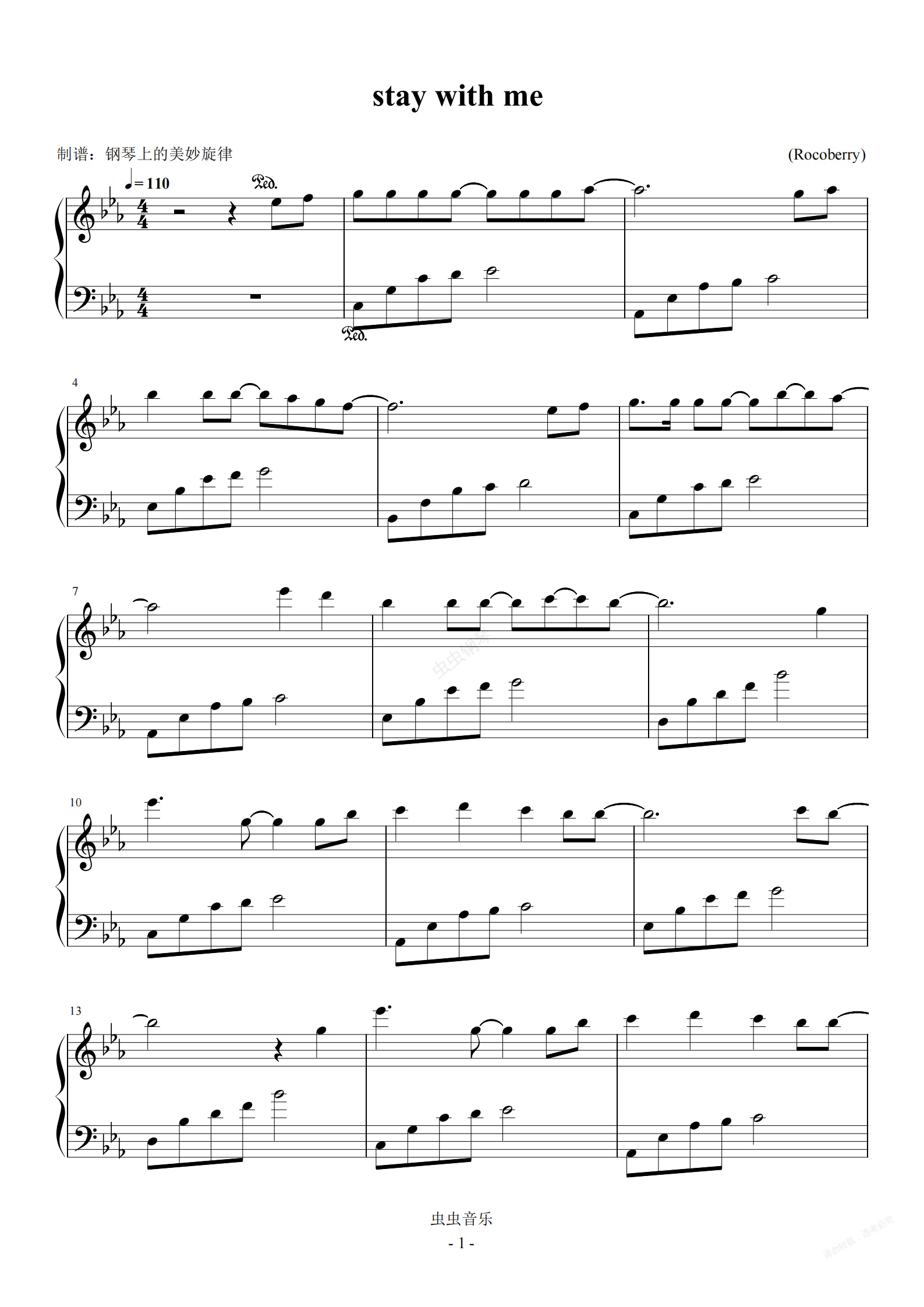 钢琴谱:stay with me鬼怪主题曲 简易版