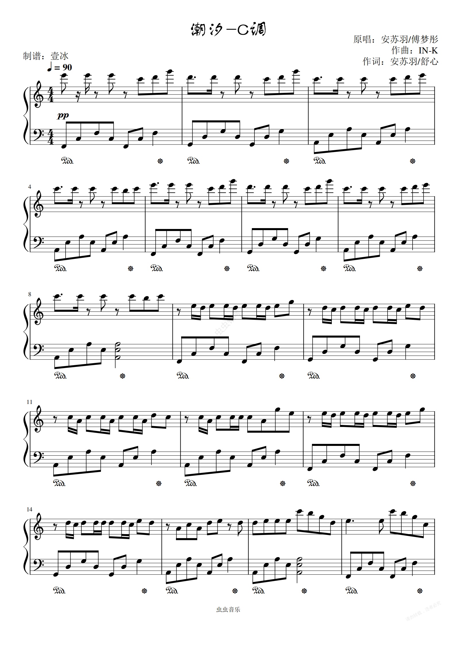 钢琴谱:潮汐//安苏羽/傅梦彤-C调版