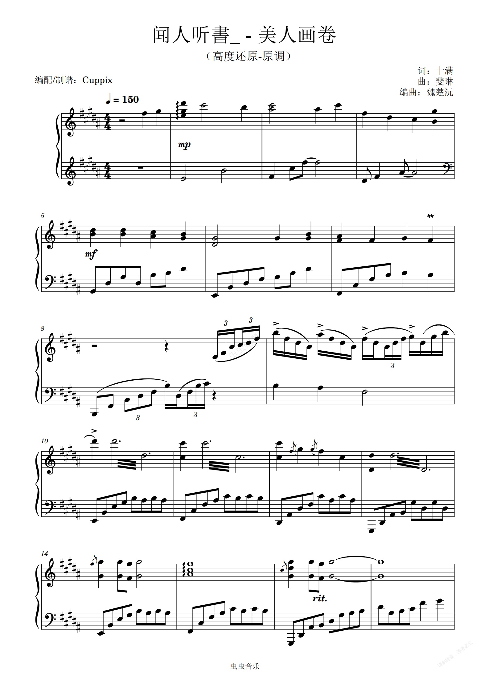 钢琴谱:闻人听書_《美人画卷》高度还原-原调