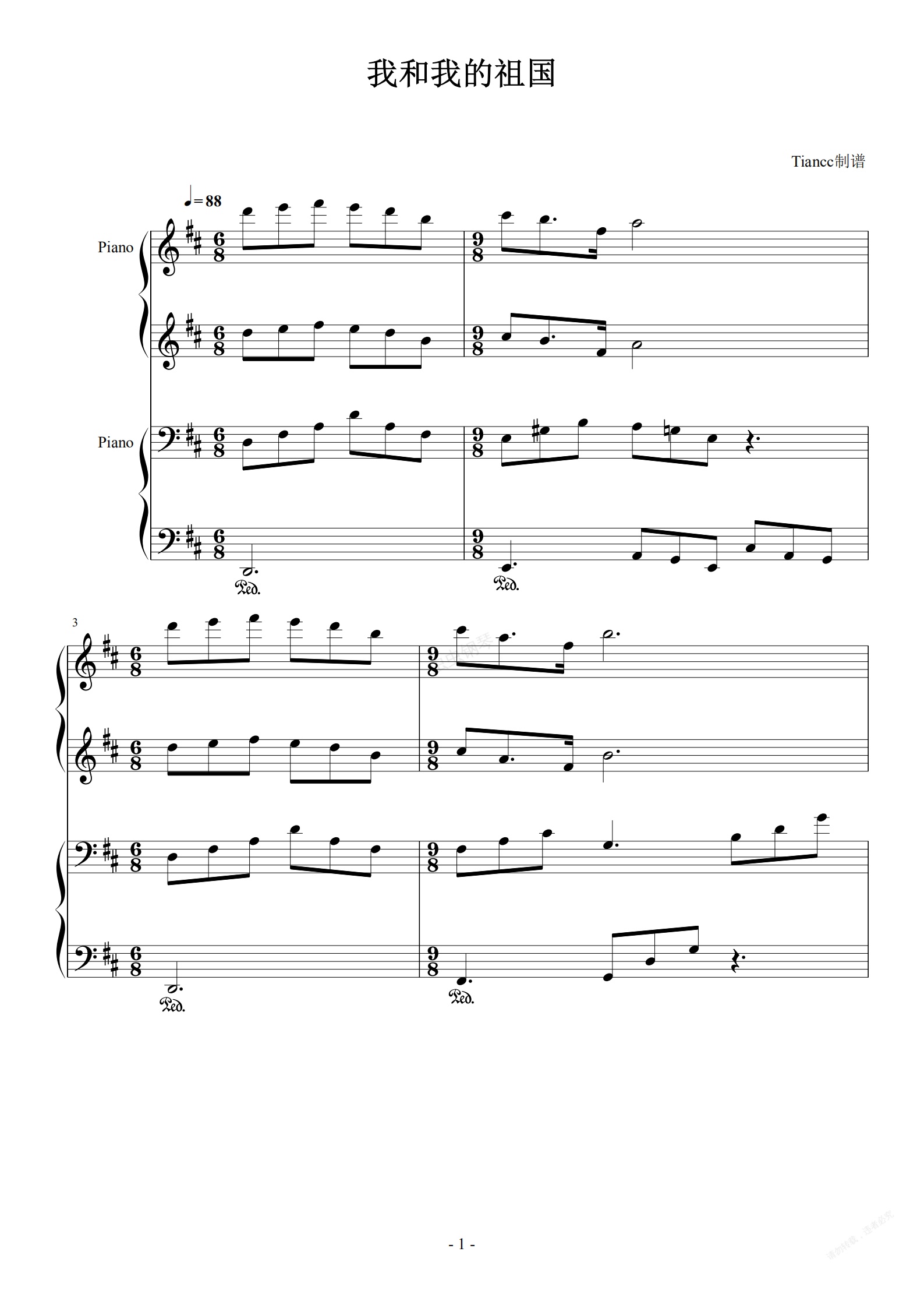 钢琴谱:《我和我的祖国》学生四手联弹谱,拜厄难度