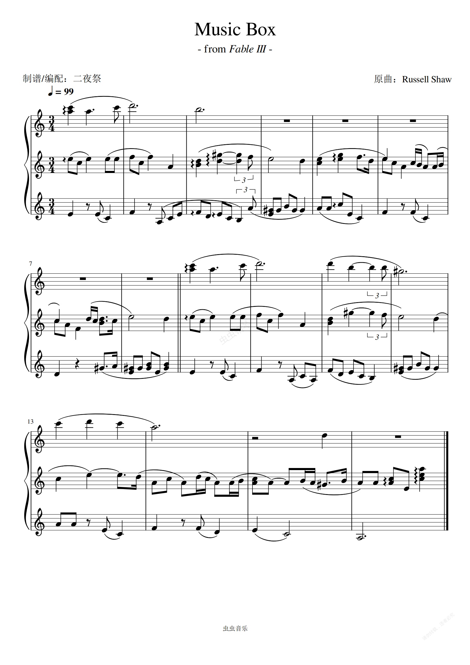 钢琴谱:【神鬼寓言3】Music Box【八音盒】